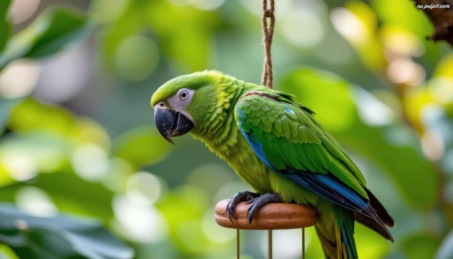 Zielona, Papuga, Sznurek, Grafika AI Na Pulpit