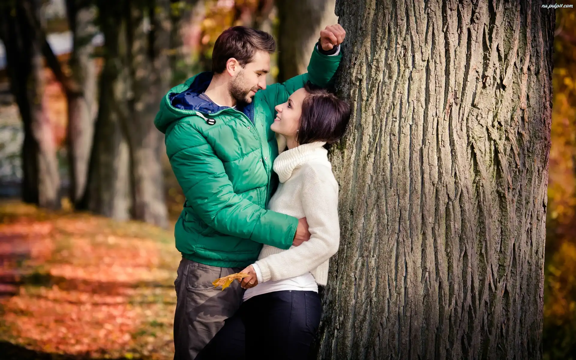 Para, Jesień, Park, Zakochana