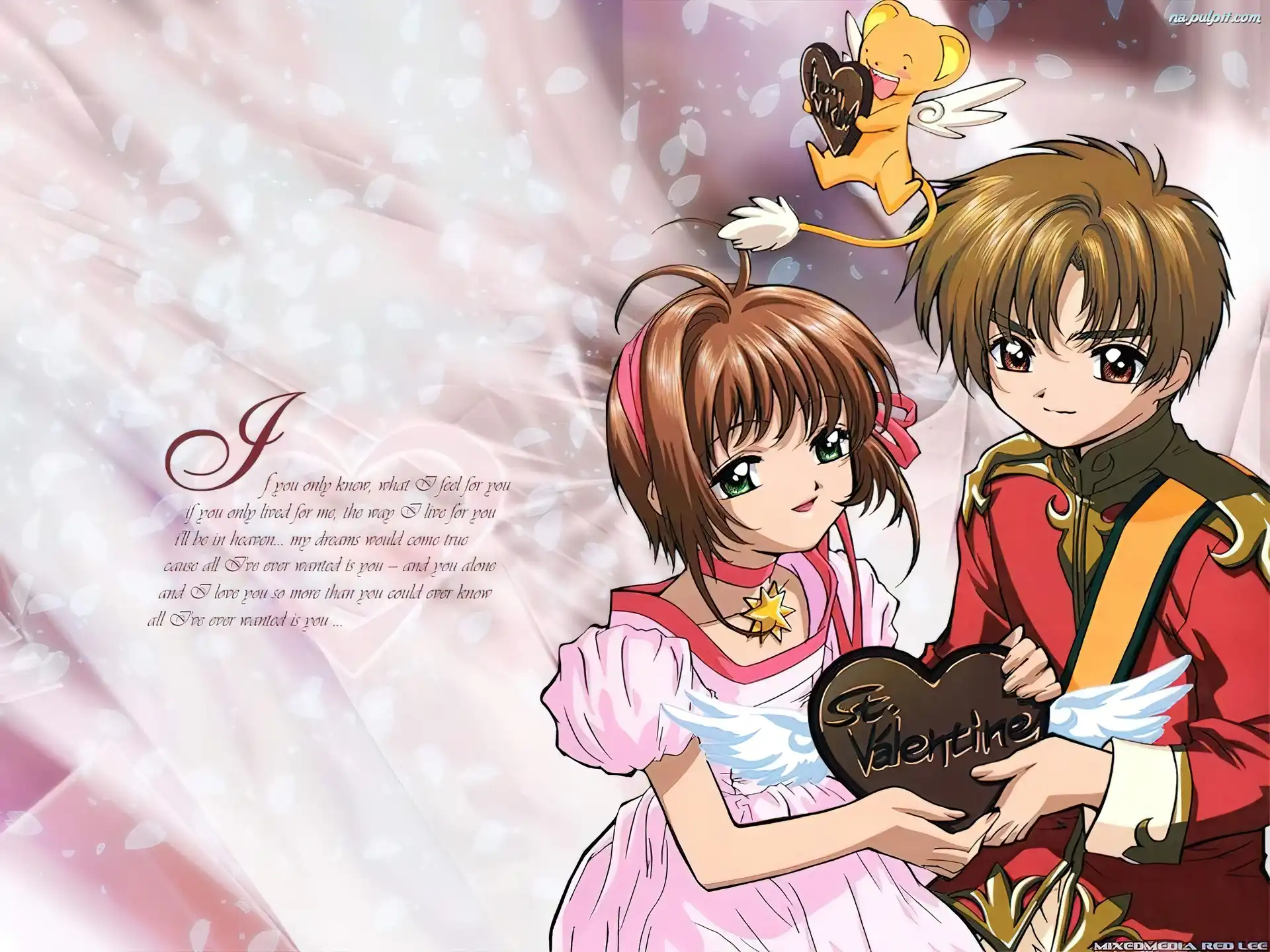 skrzydełka, para, pluszak, napisy, ludzie, Cardcaptor Sakura, serce Na Pulpit