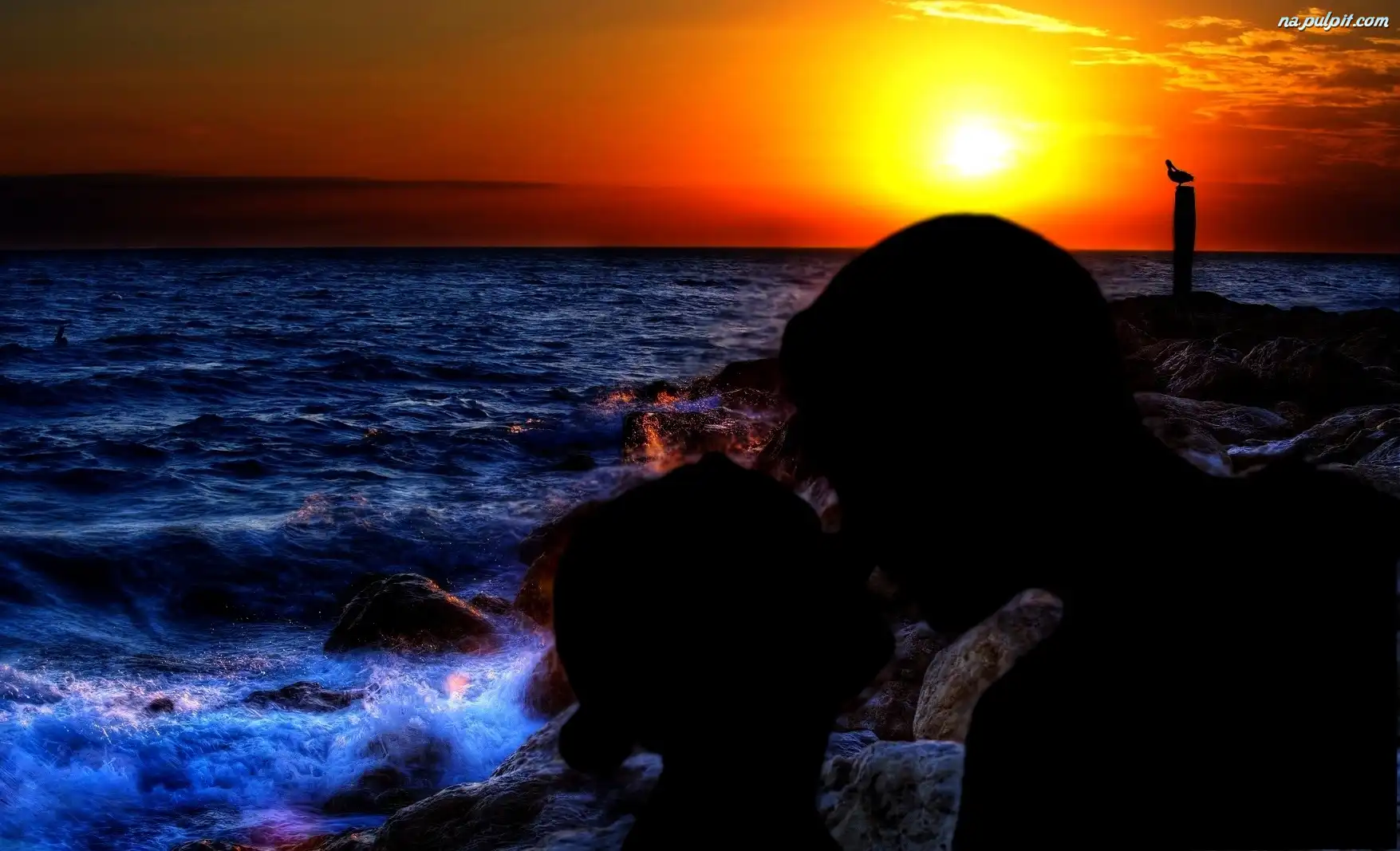 Para, Morze, Zachód Słońca, Zakochana Na Pulpit