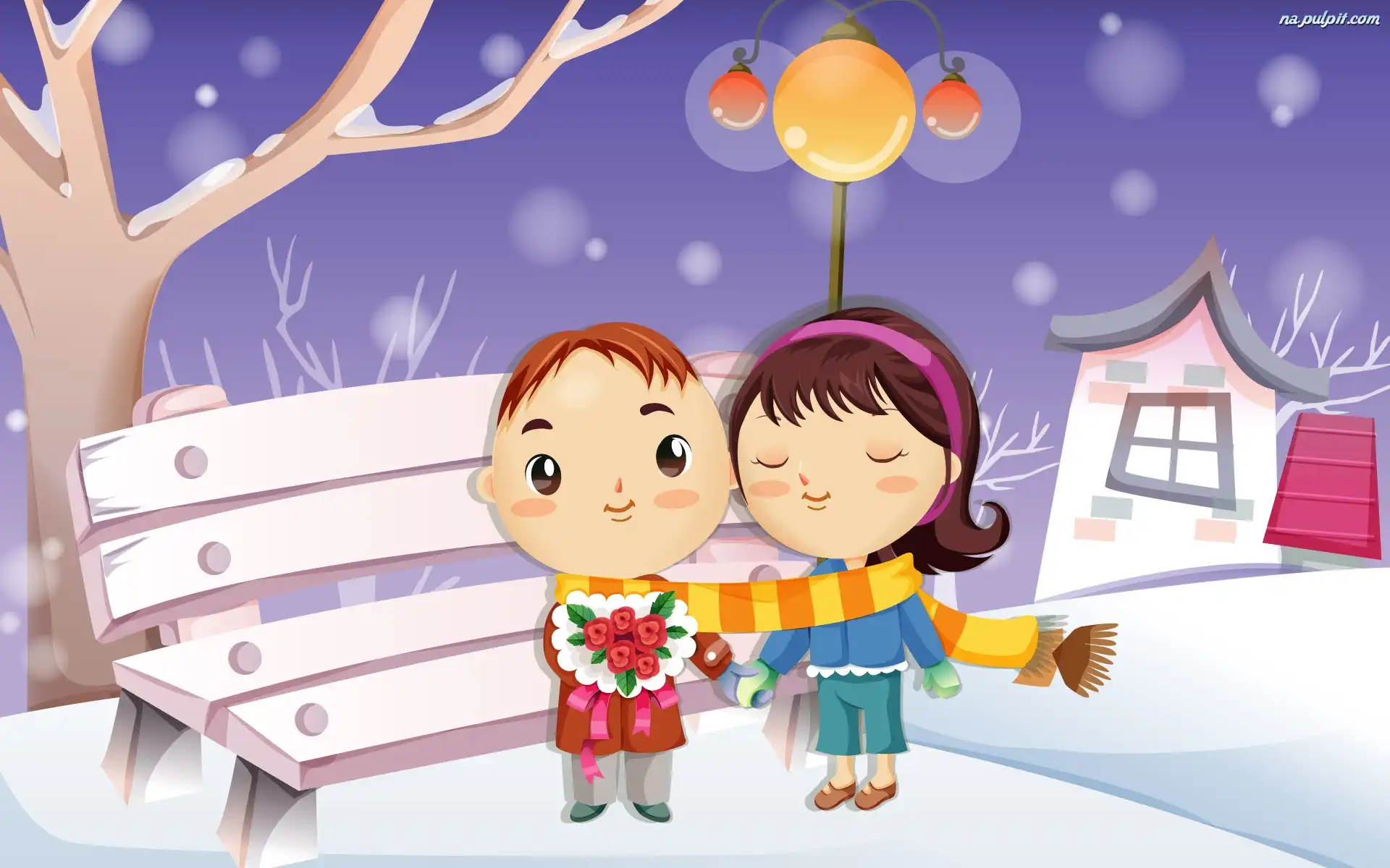 Ławeczka, Zakochany, Para, Zima Na Pulpit