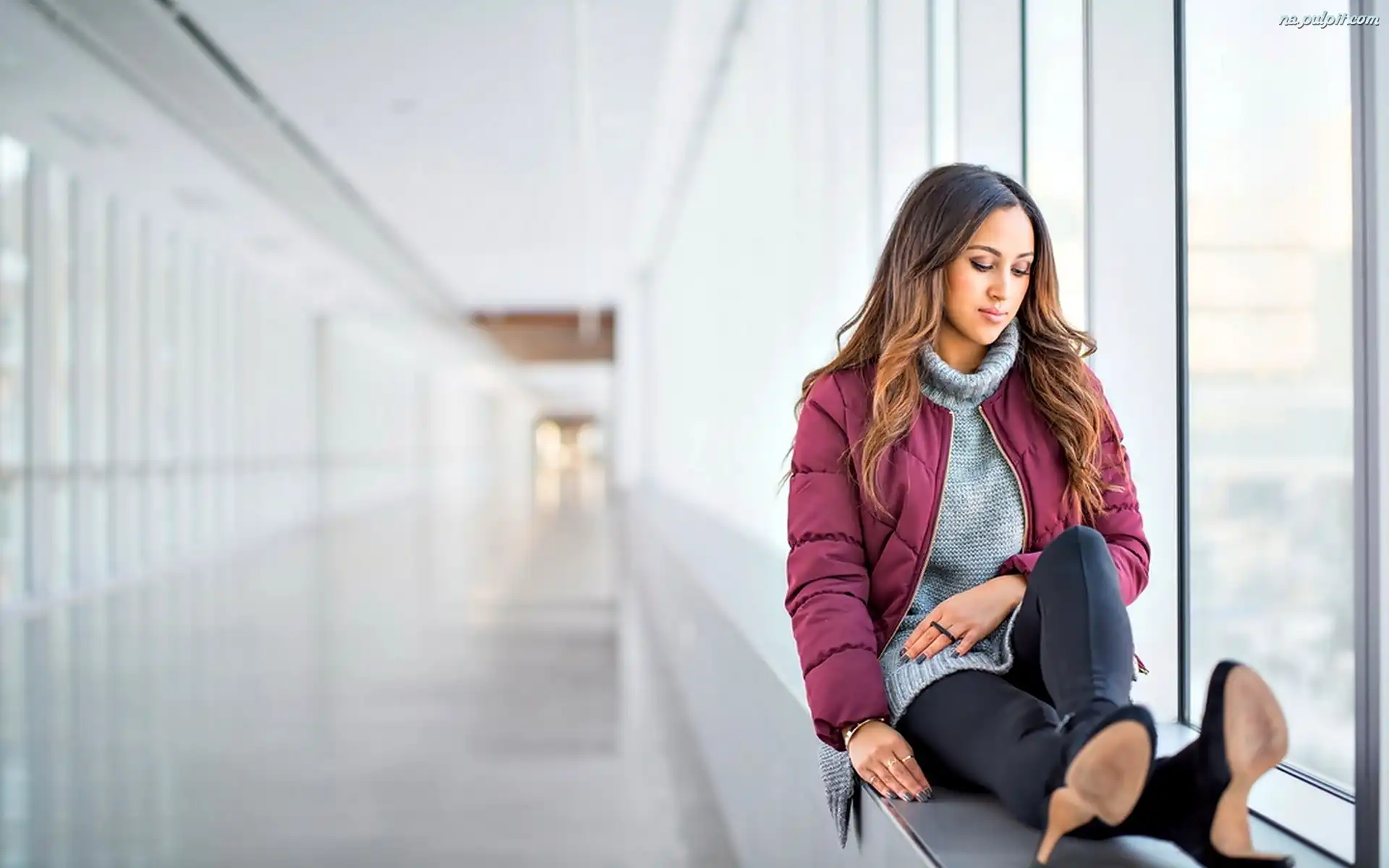 Parapet, Wnętrze, Kobieta, Okno Na Pulpit