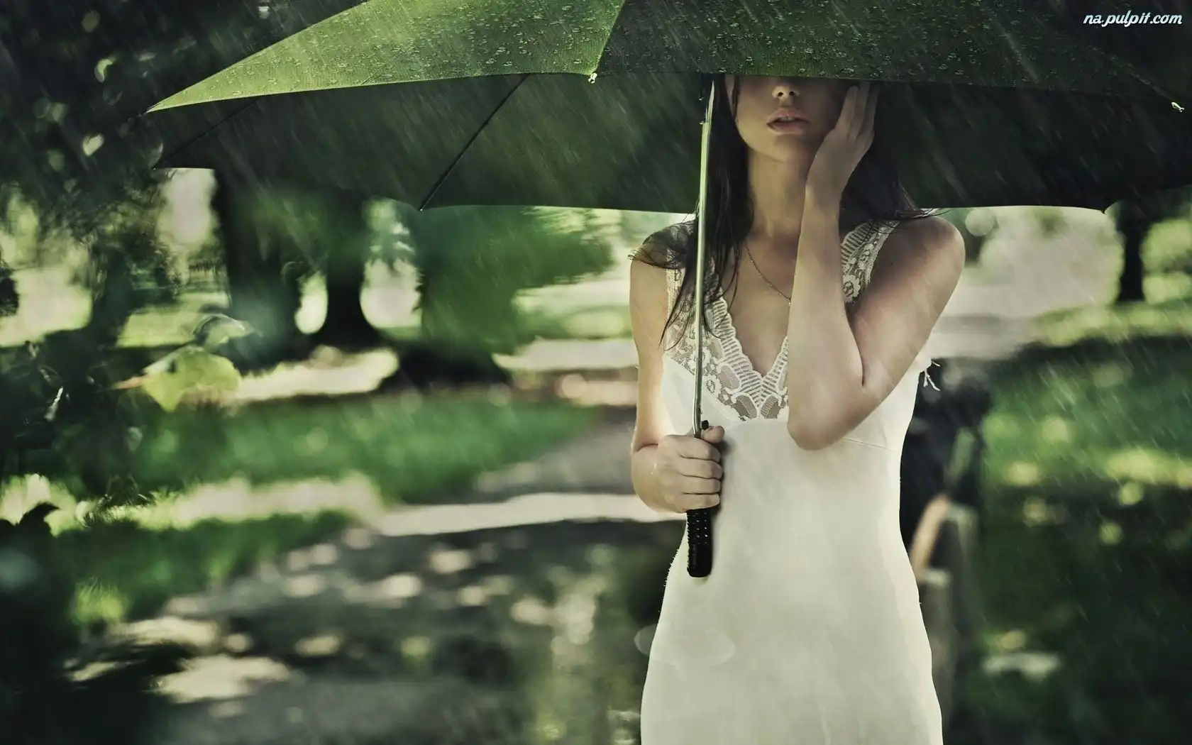 Deszcz, Parasol, Dziewczyna Na Pulpit