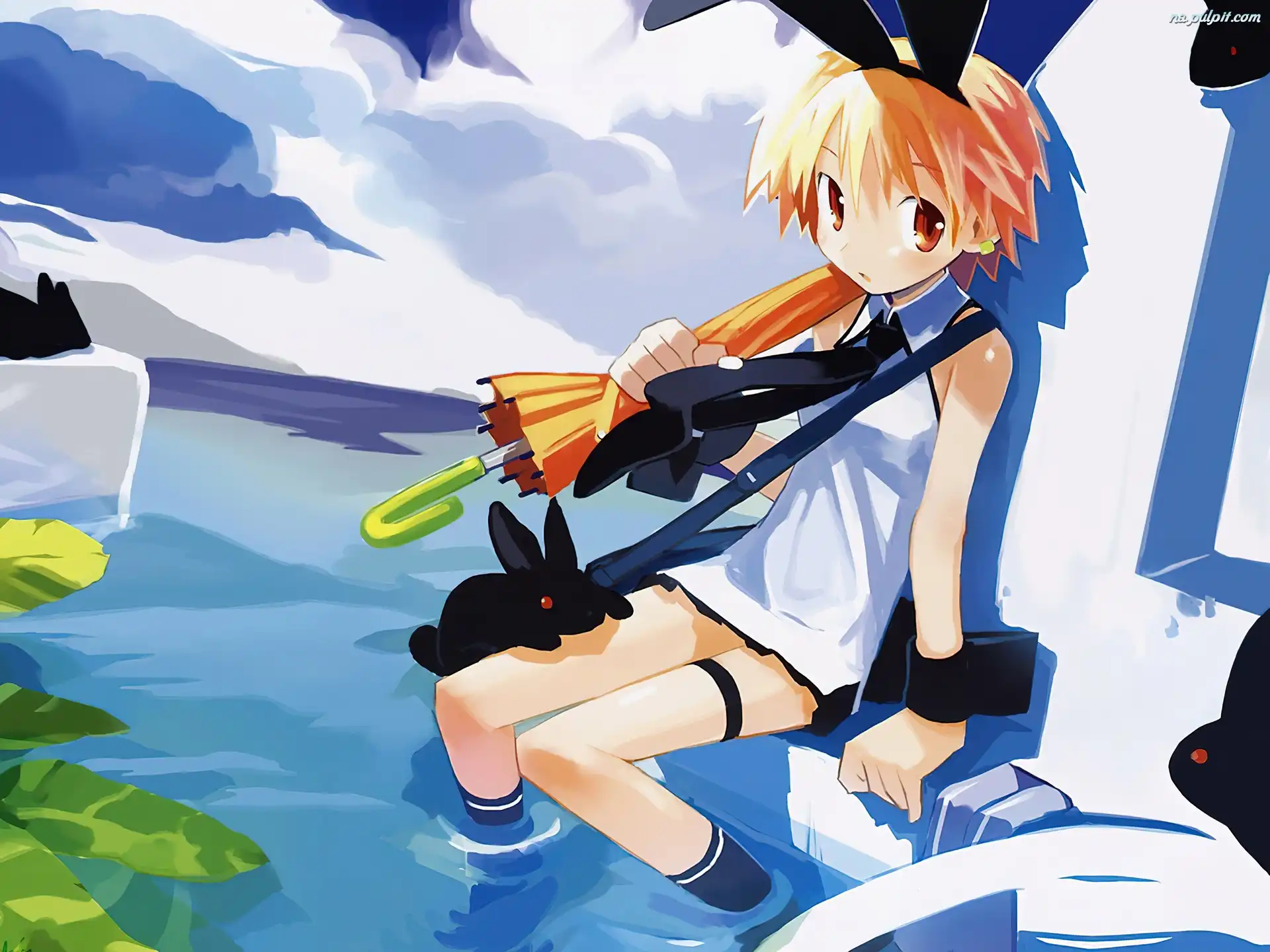 parasol, woda, Disgaea, dziewczyna Na Pulpit