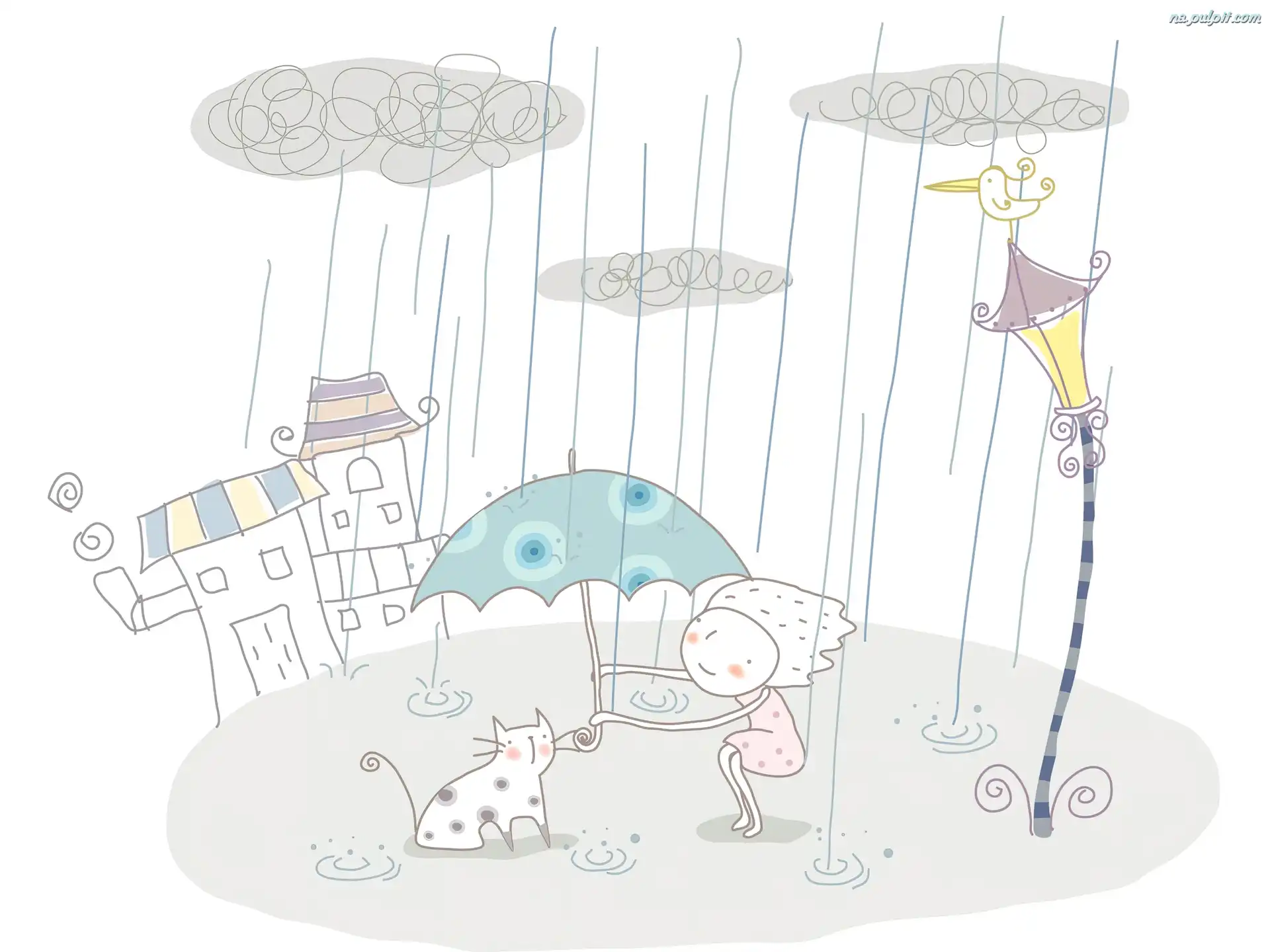 Parasol, Deszcz, Dziewczynka, Fantasy, Kot Na Pulpit