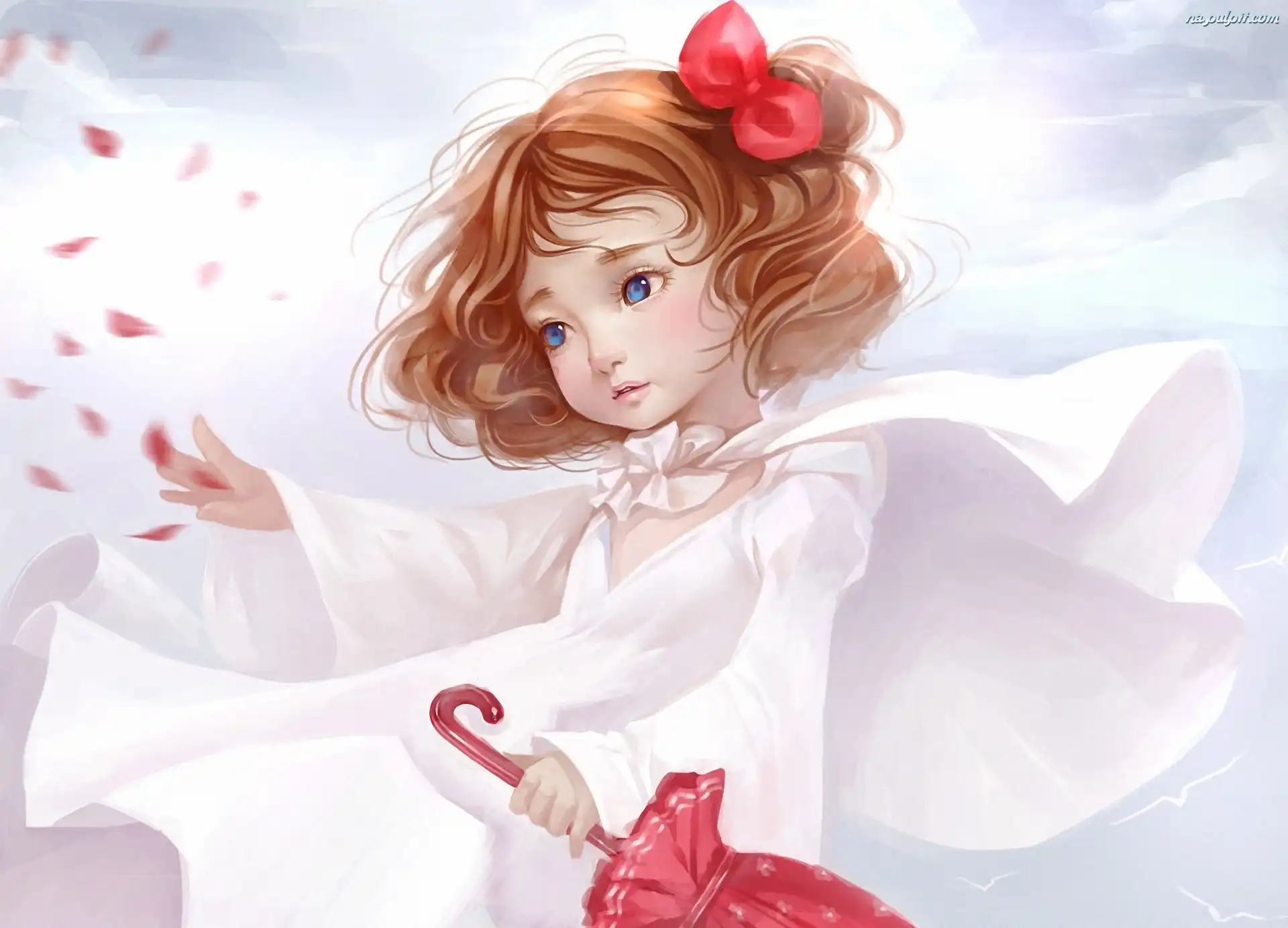 Parasol, Dziewczynka, Mała, Kokarda Na Pulpit