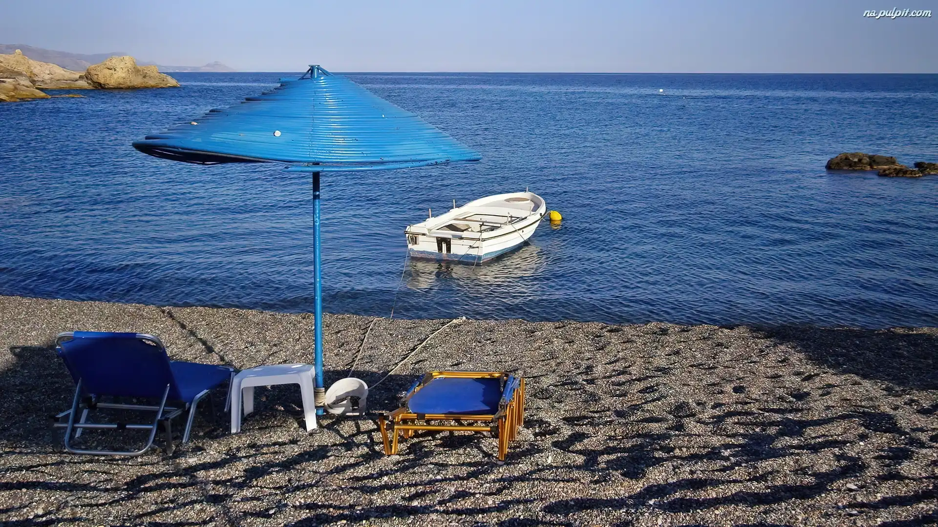 Parasol, Łódka, Morze, Plaża Na Pulpit