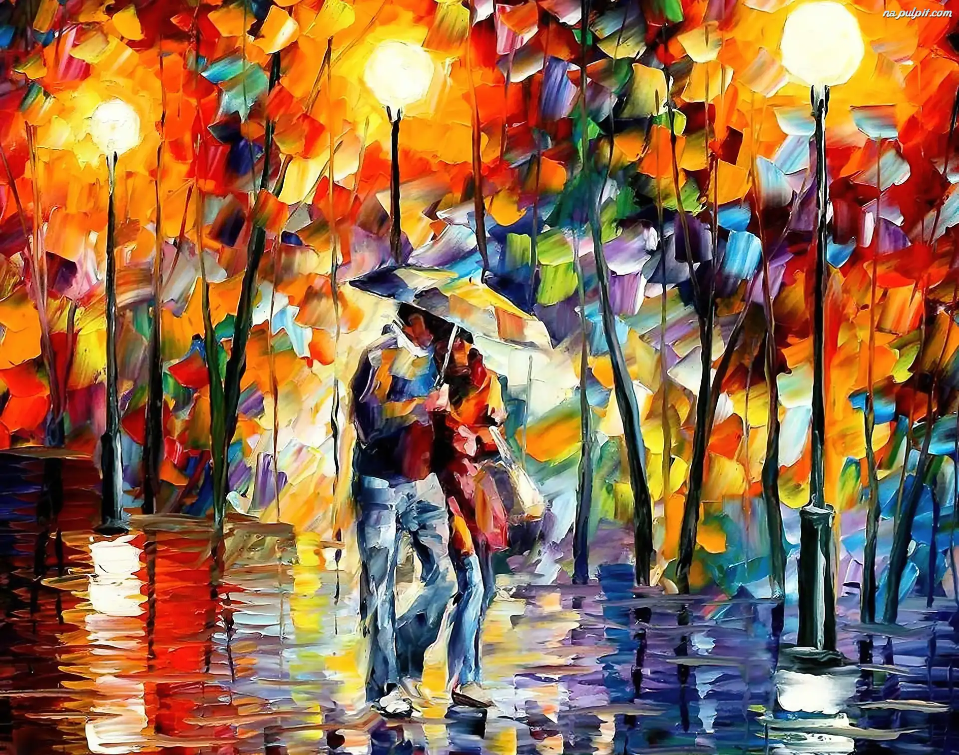 Para, Parasol, Reprodukcje Obrazów, Zakochanych, Park, Deszcz Na Pulpit