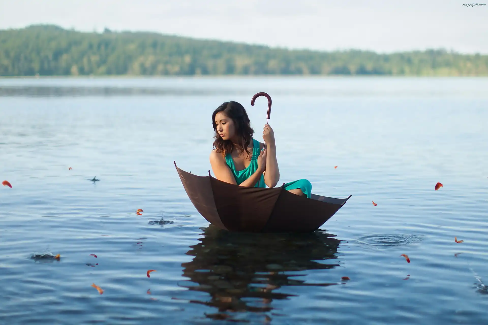 Parasol, Kobieta, Rzeka, Czarny Na Pulpit