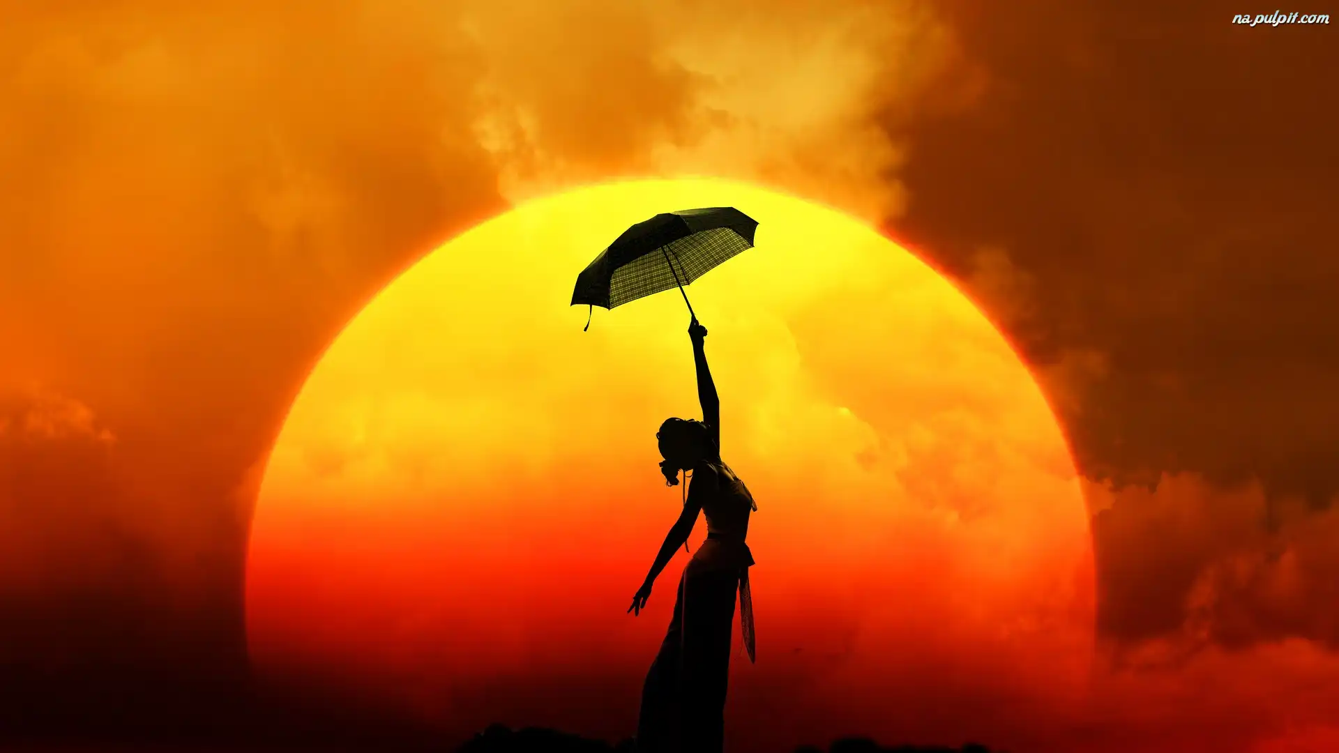 Parasol, Słońca, Zachód, Kobieta Na Pulpit