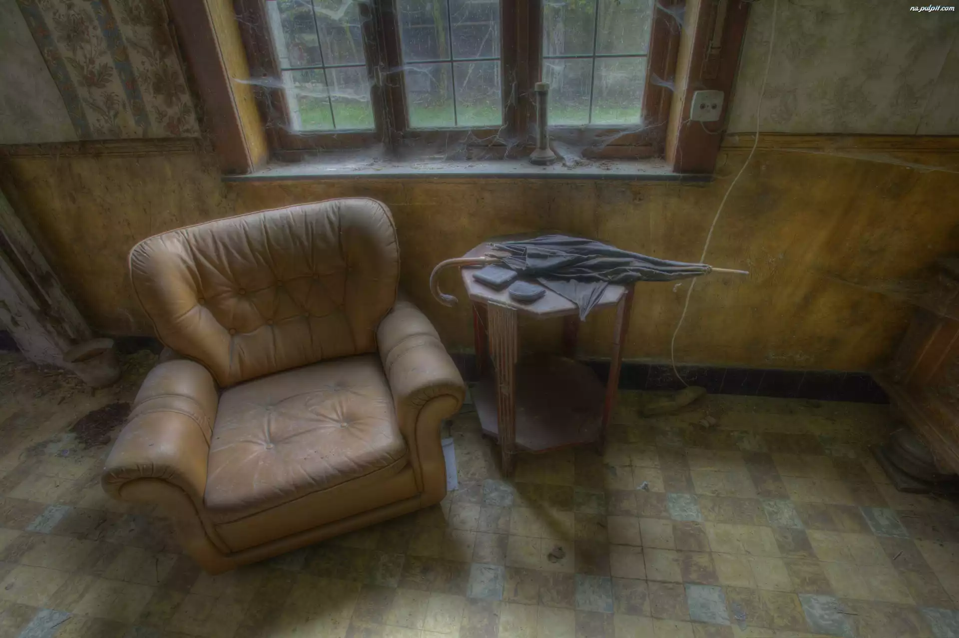 Parasol, Fotel, Pomieszczenie, Zaniedbane, Stolik Na Pulpit