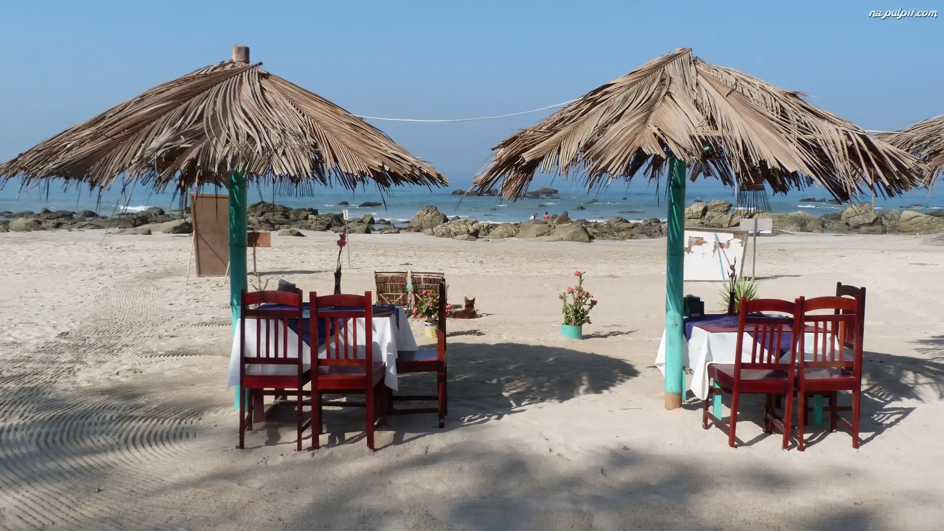 Parasole, Kamienie, Wakacje, Plaża, Stoliki, Morze Na Pulpit