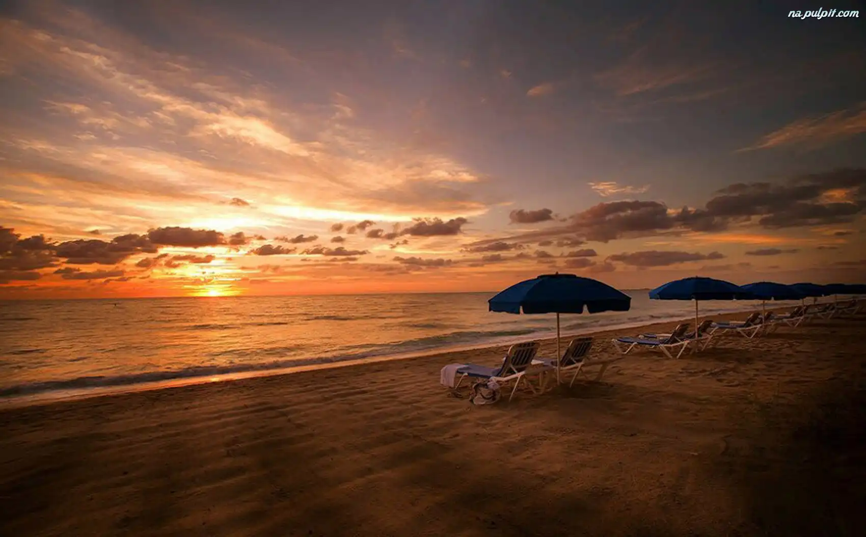 Parasole, Słońca, Zachód, Leżaki Na Pulpit