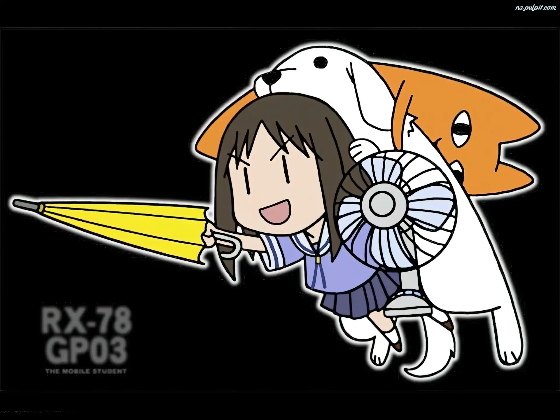 parasolka, kot, pies, Azumanga Daioh, dziewczyna
