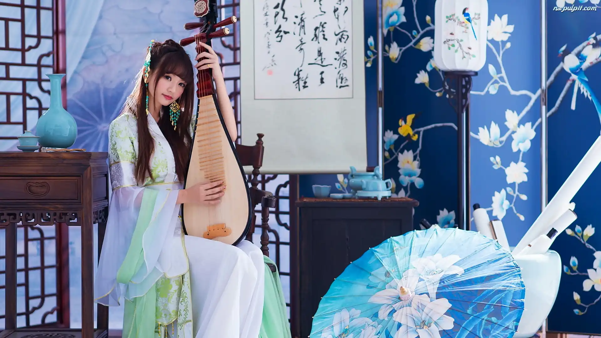 Parasolka, Mandolina, Muzyka, Kobieta, Pokój Na Pulpit