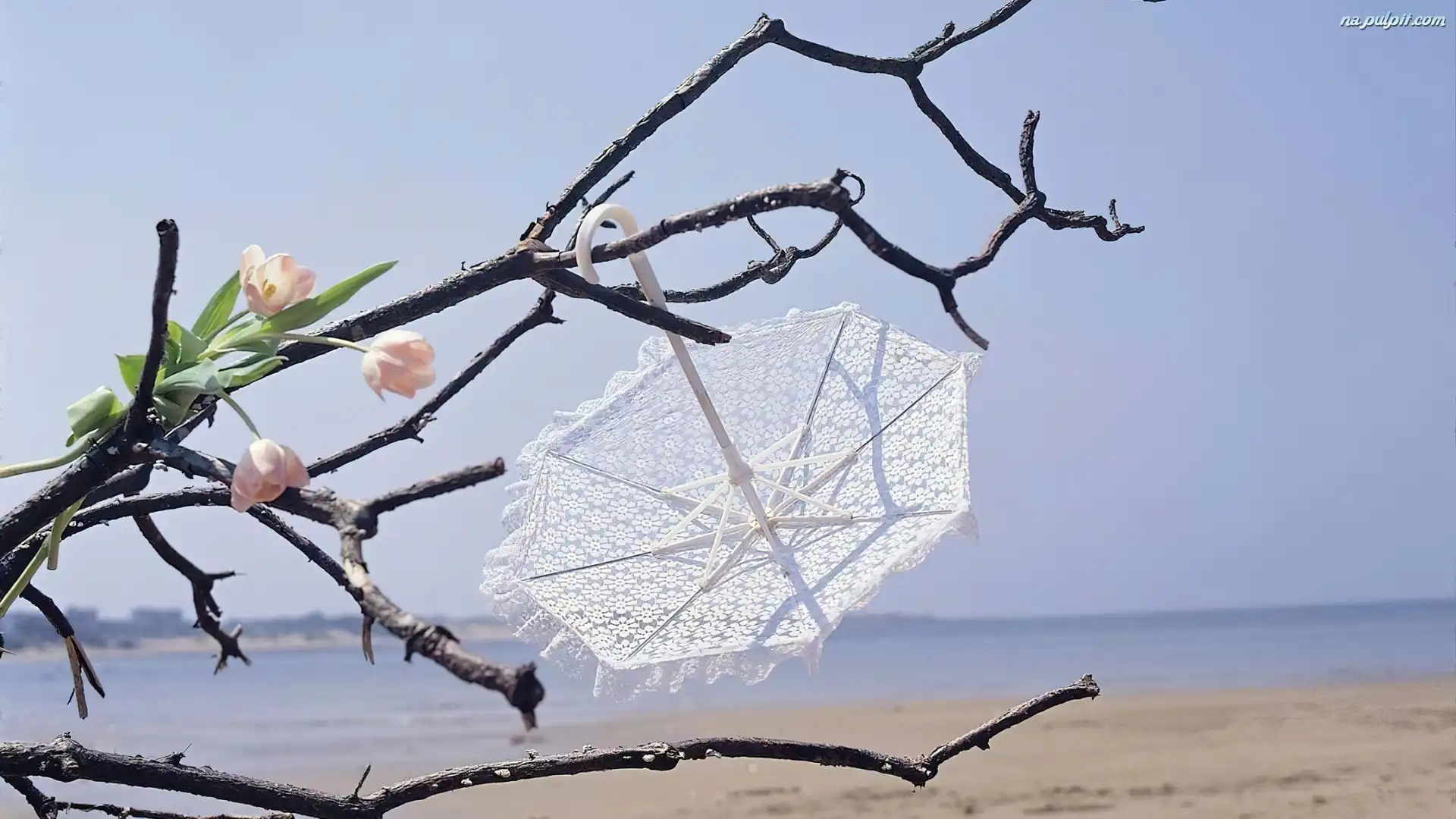 Parasolka, Konary, Plaża, Morze, Tulipany Na Pulpit