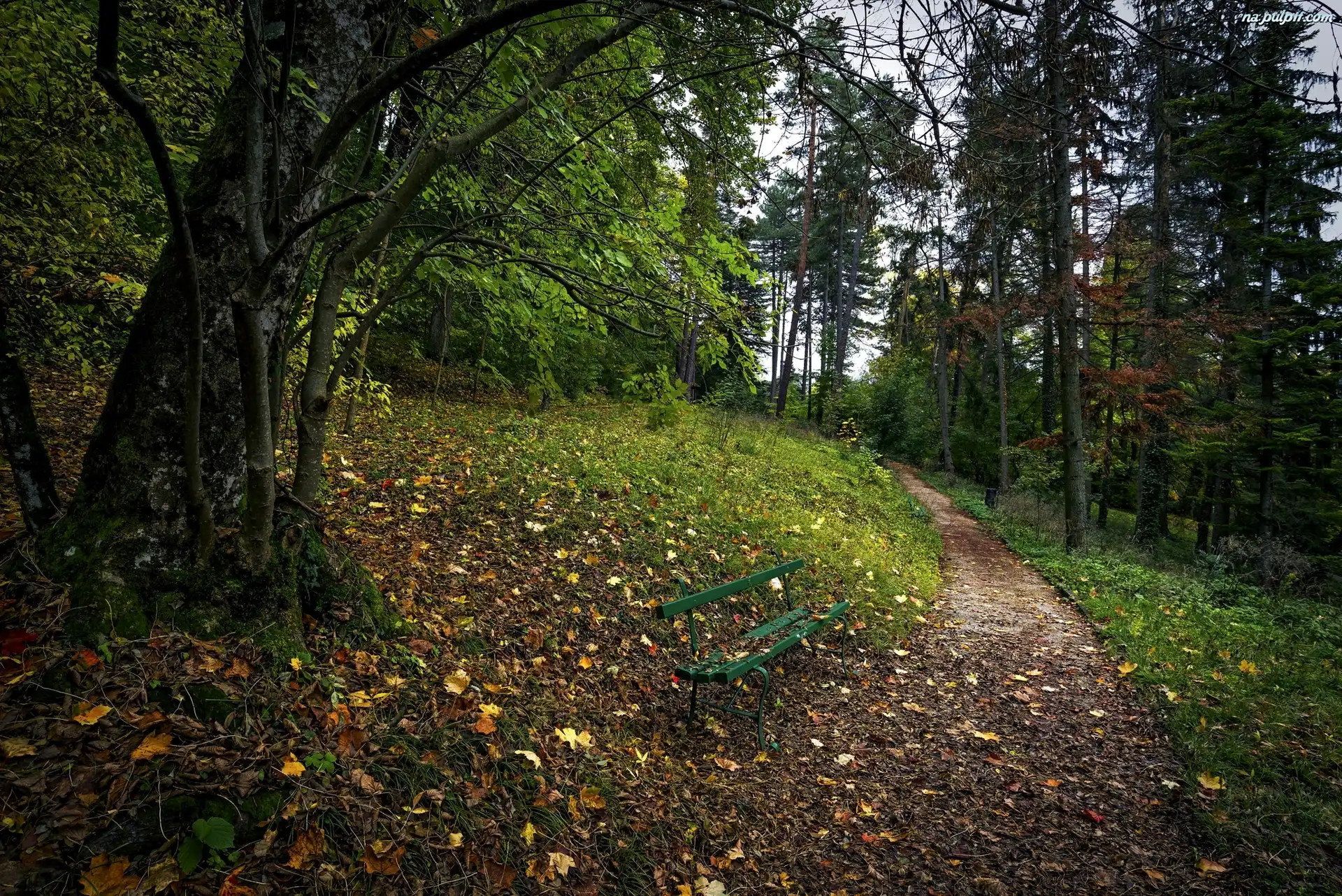 Ławka, Alejka, Drzewa, Park, Liście Na Pulpit