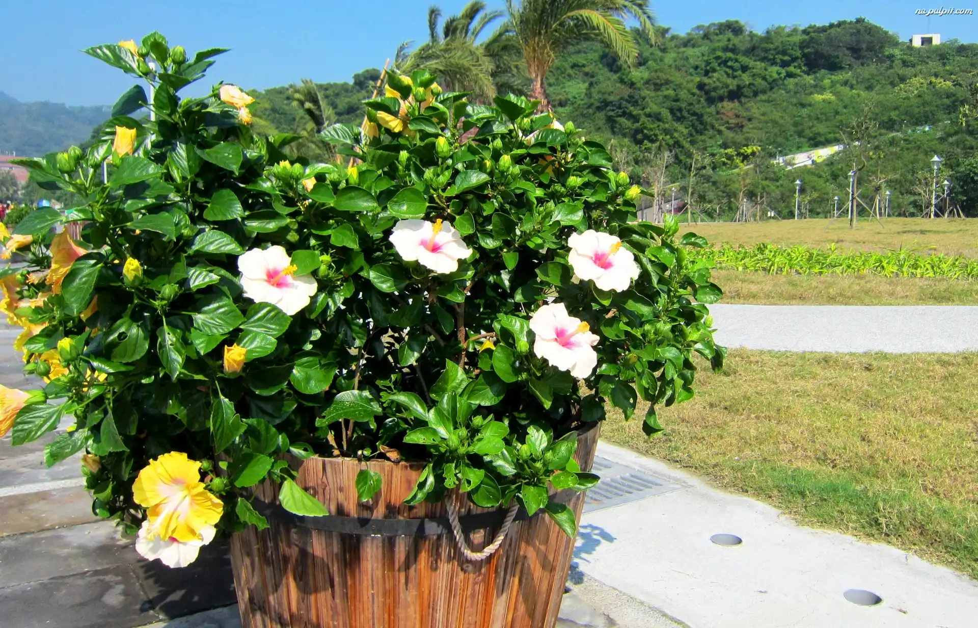 Donica, Hibiskusy, Kwiatki, Park, Ketmia