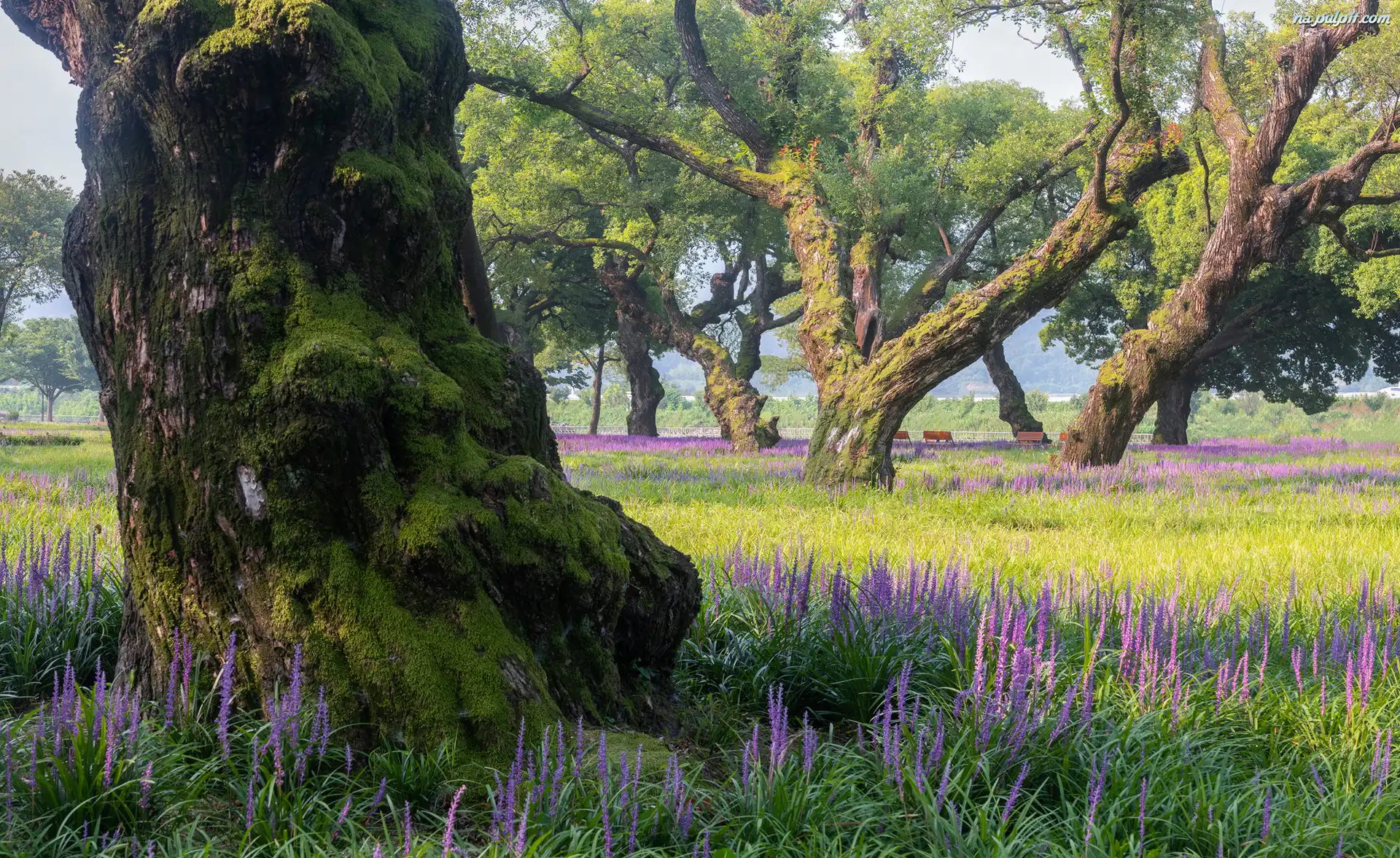 Park, Kwiaty, Fioletowe, Drzewa, Trawa Na Pulpit
