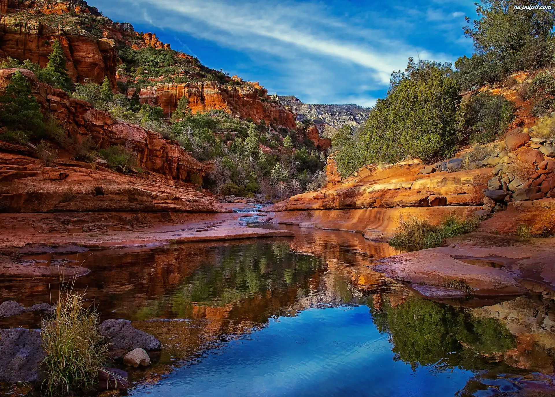 Drzewa, Stan Arizona, Skały, Kanion, Park stanowy Slide Rock, Stany Zjednoczone, Rzeka Na Pulpit