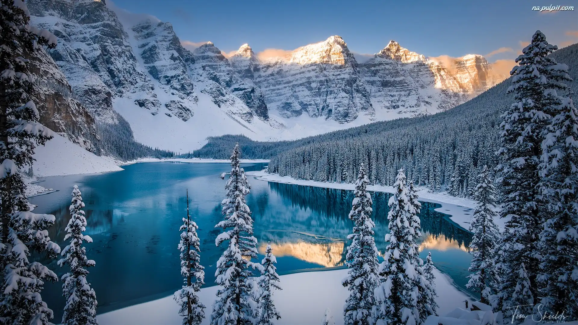 Góry, Góry, Jezioro, Moraine Lake, Park Narodowy Banff, Kanada, Ośnieżone, Zima, Drzewa Na Pulpit |