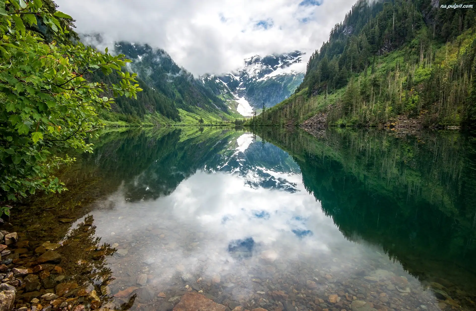 Park Narodowy Północnych Gór Kaskadowych, Jezioro Goat Lake, Drzewa, Stan Waszyngton, Stany Zjednoczone, Odbicie, Góry, Kamienie Na Pulpit |