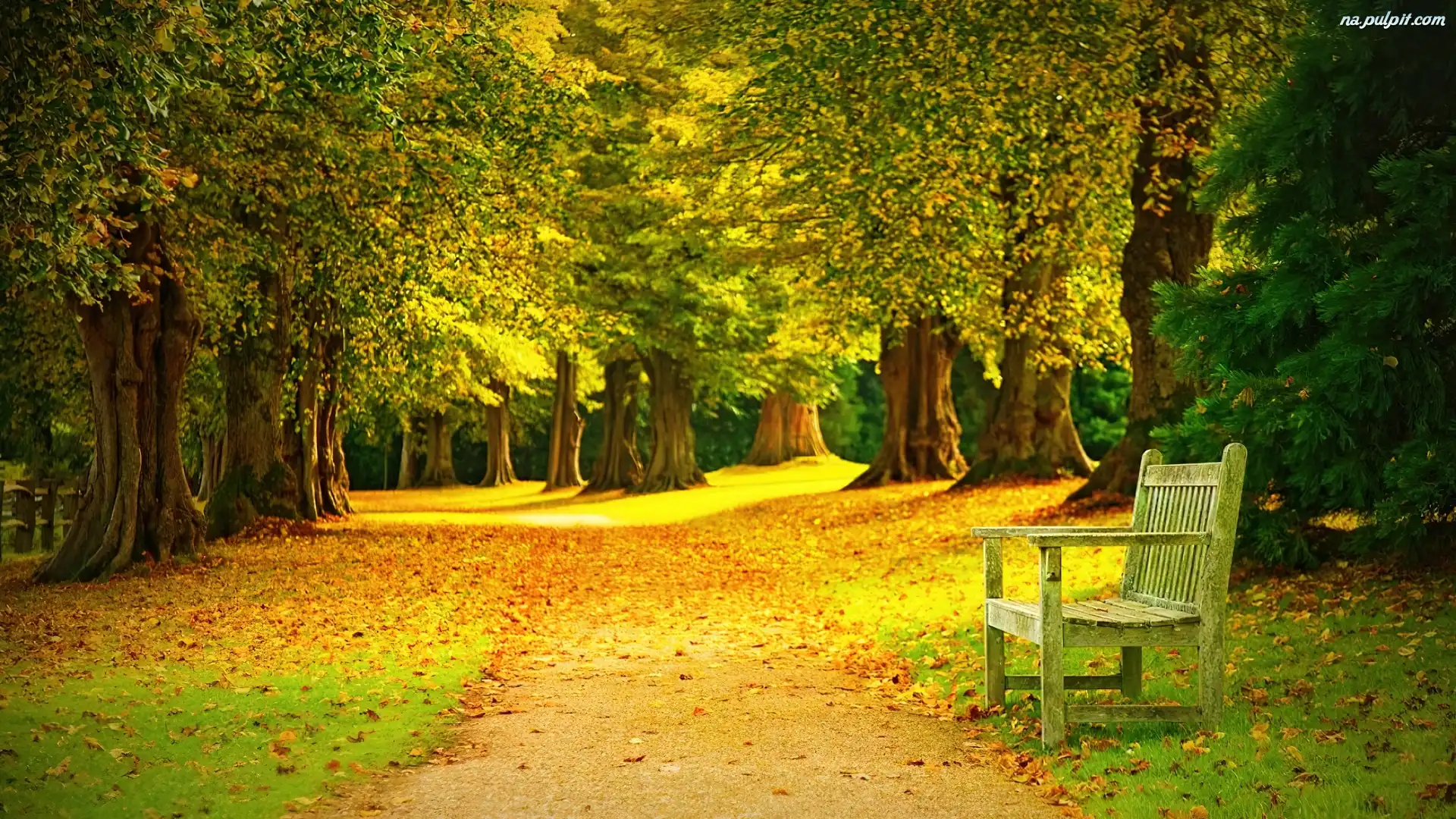 Park, Ławka, Jesień, Drzewa Na Pulpit
