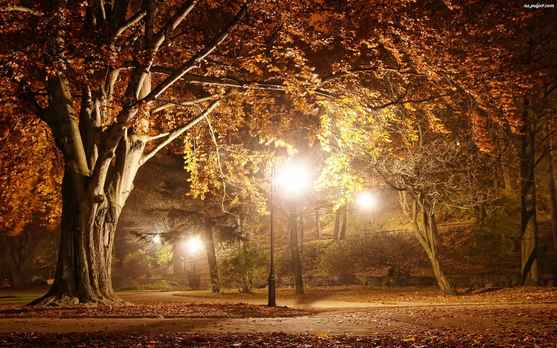 Jesien, Park, Drzewa Na Pulpit