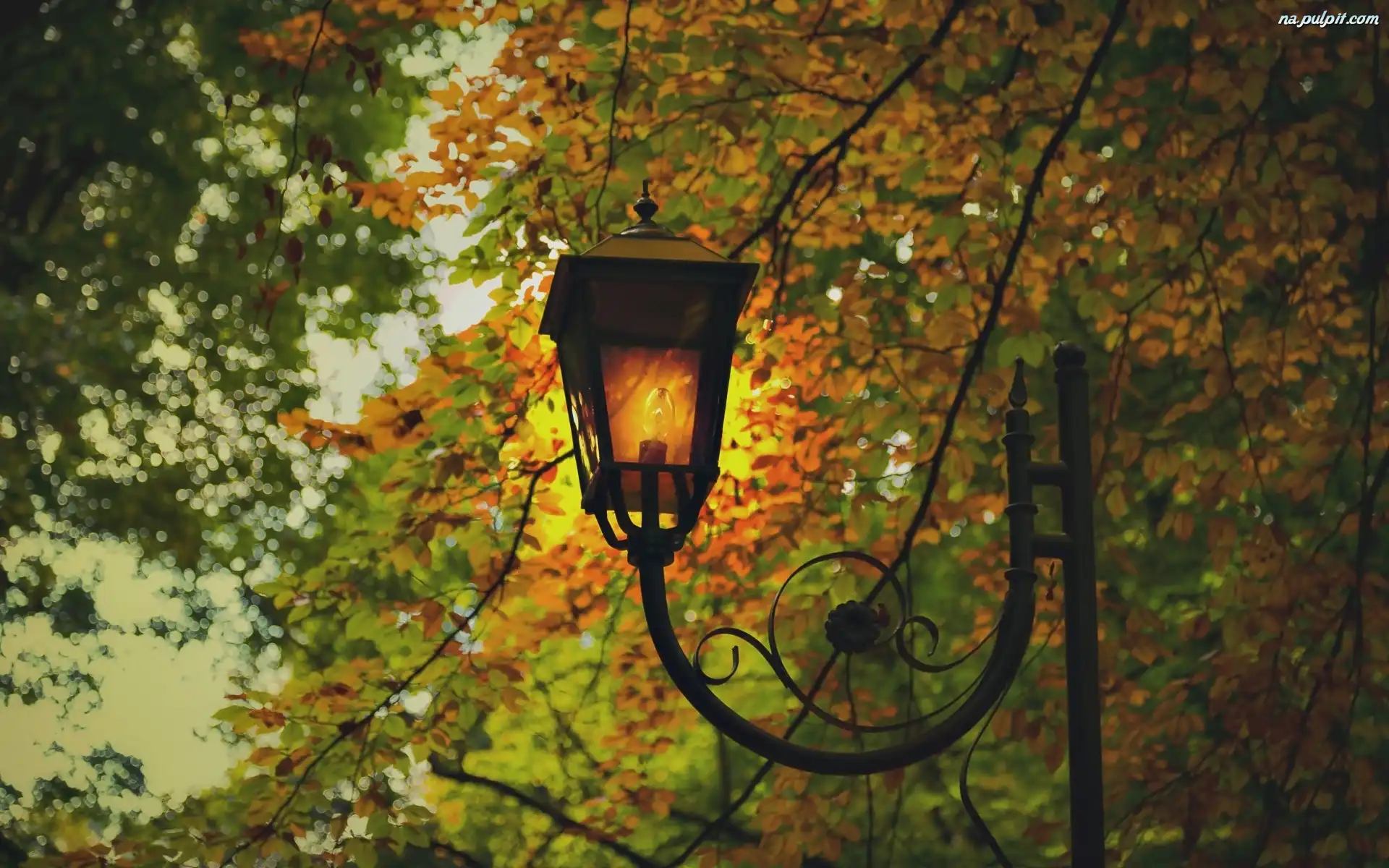 Park, Liście, Drzewa, Jesień, Latarnia Na Pulpit