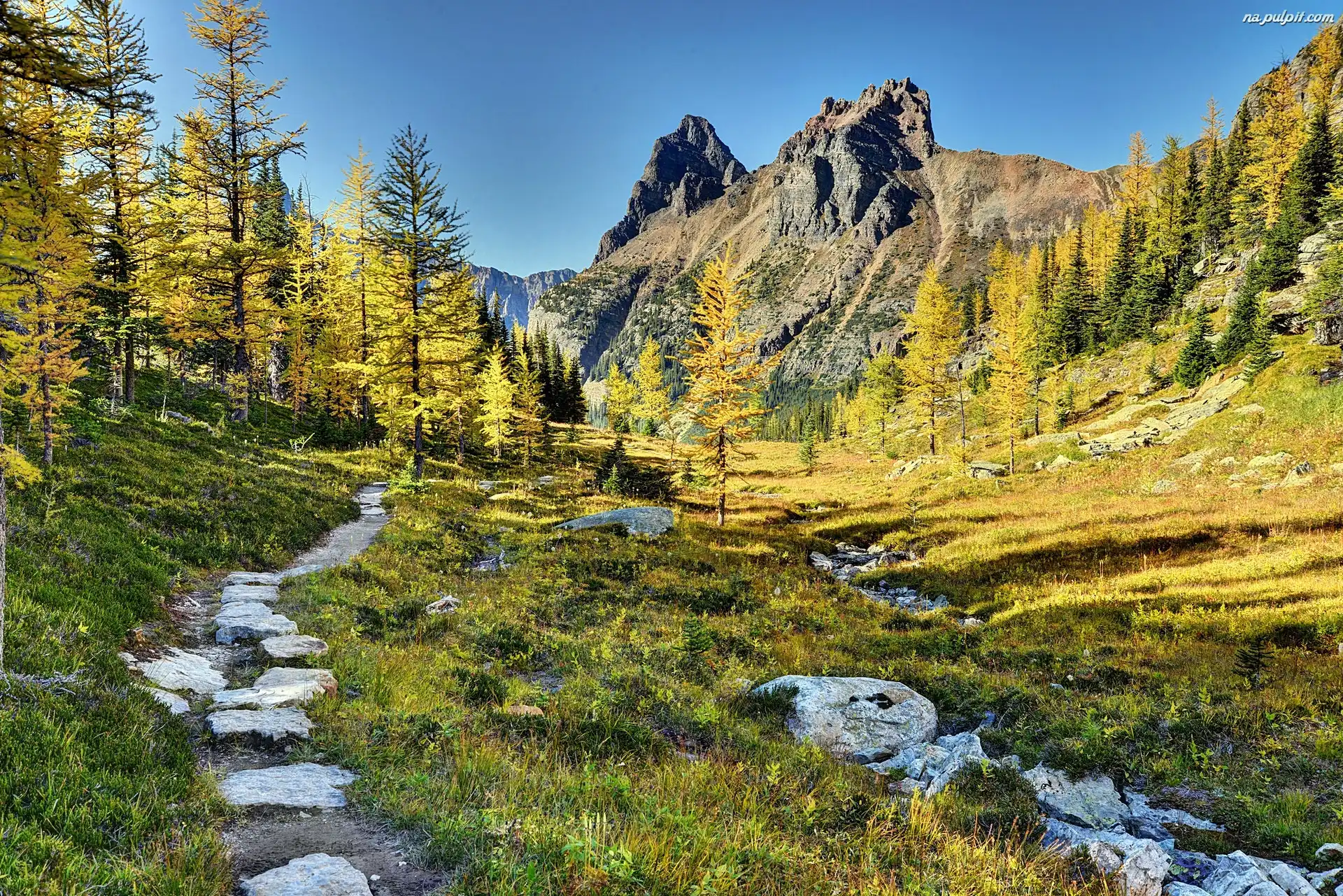 Lasy, Park Narodowy Yoho, Kanada, Ścieżka, Góry, Jesień Na Pulpit