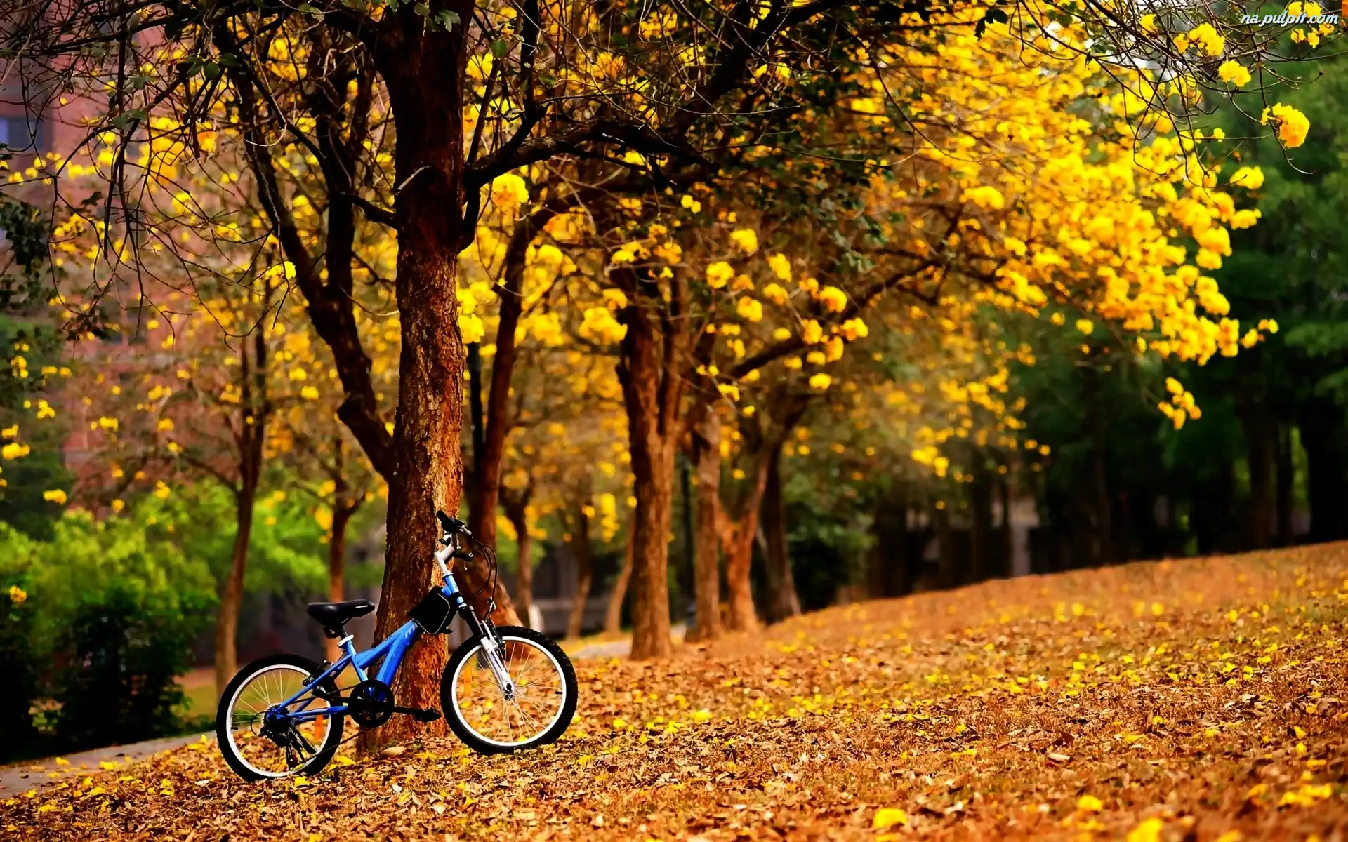 Park, Niebieski, Rower, Opadłe, Jesienny, Liście Na Pulpit
