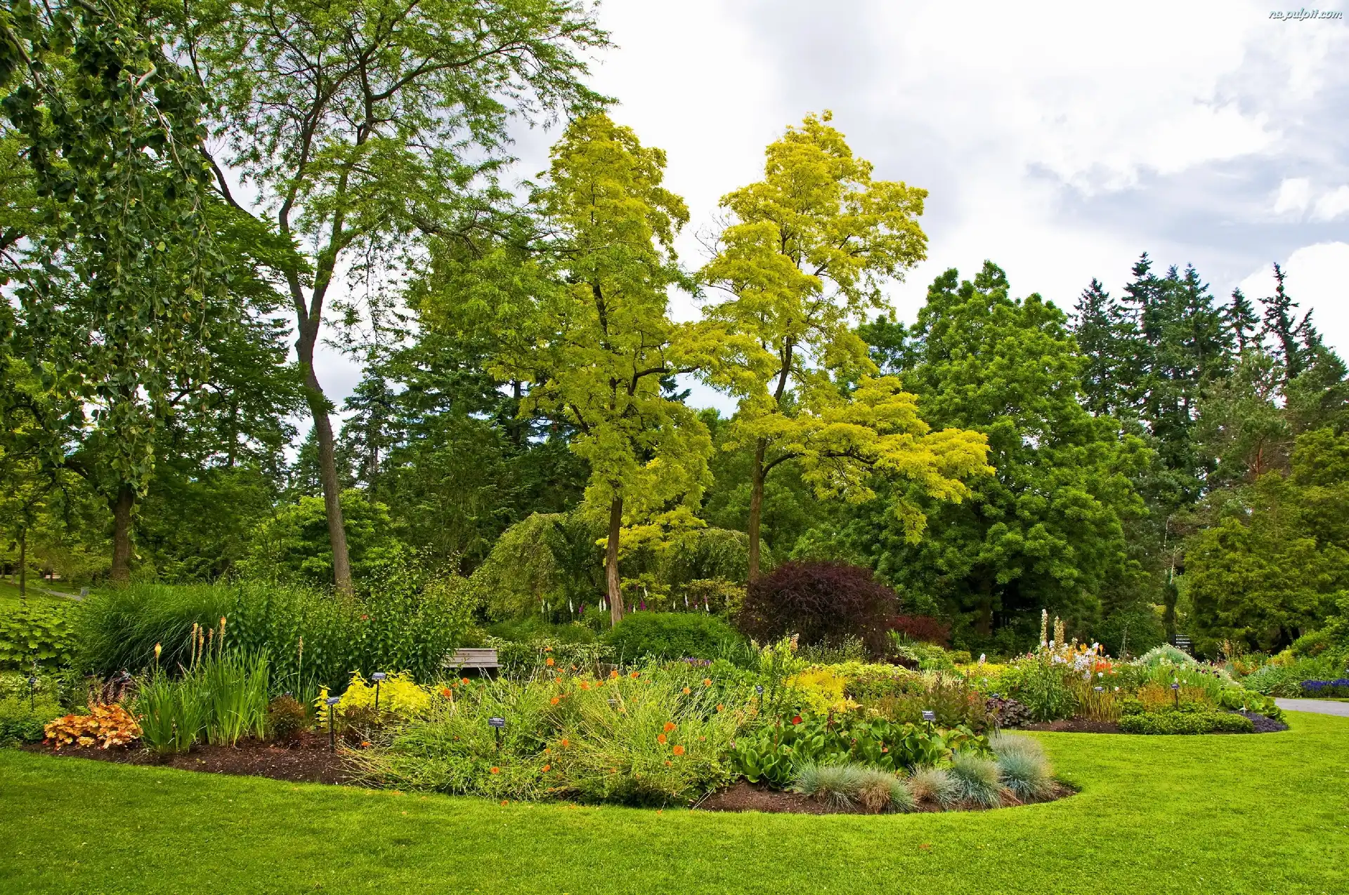 Ławka, Klomby, Drzewa, Park, Kwiaty Na Pulpit