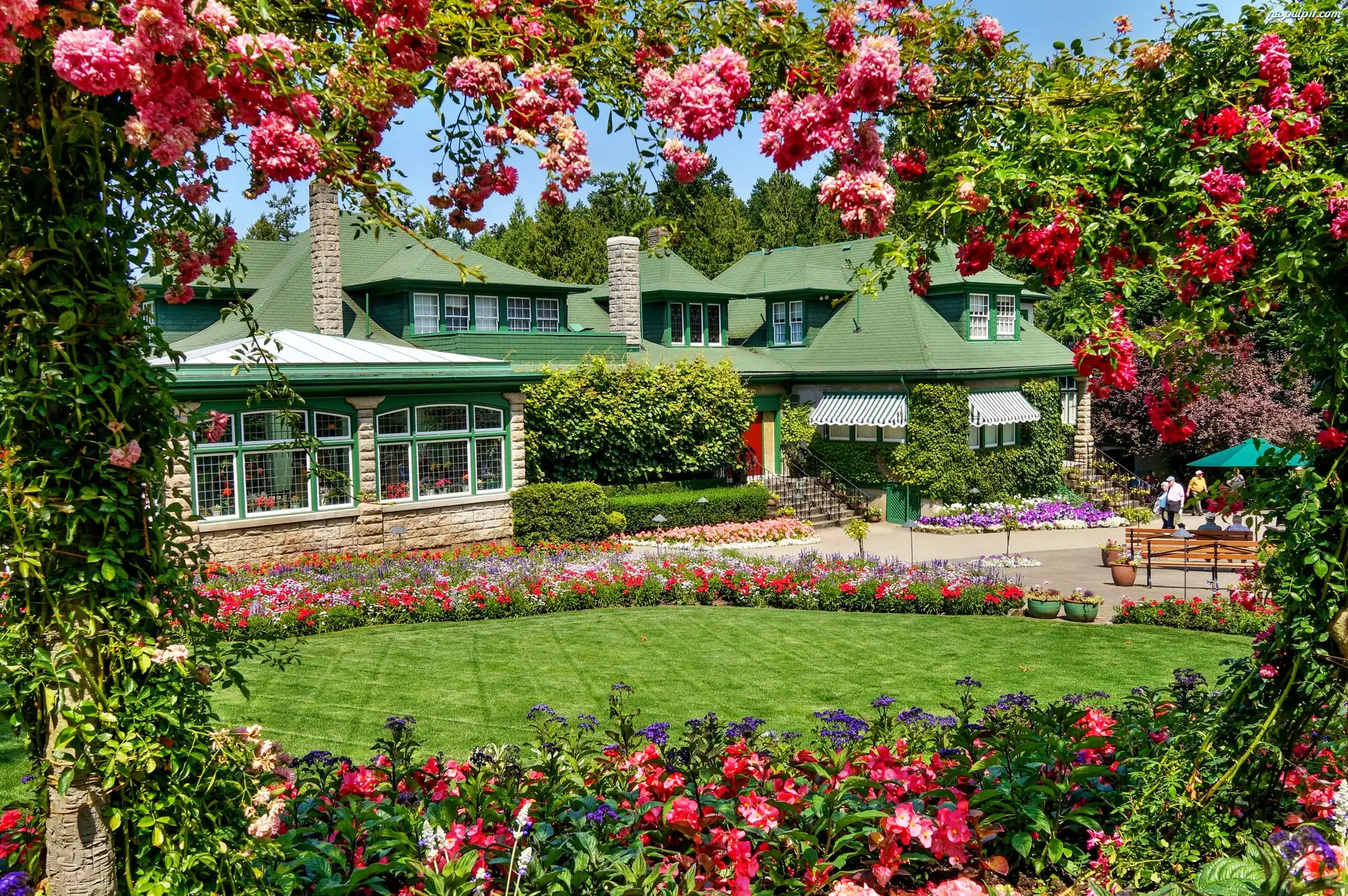 Kwiaty, Park, Budynek Na Pulpit