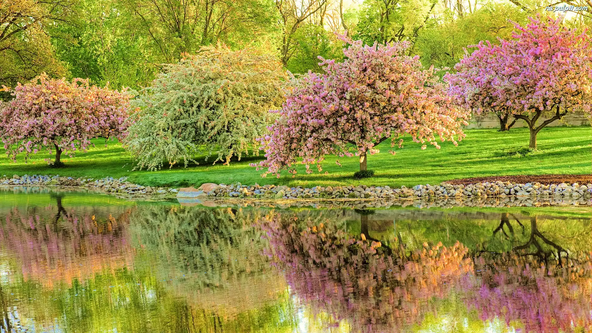 Park, Drzewka, Kwitnące, Rzeka Na Pulpit