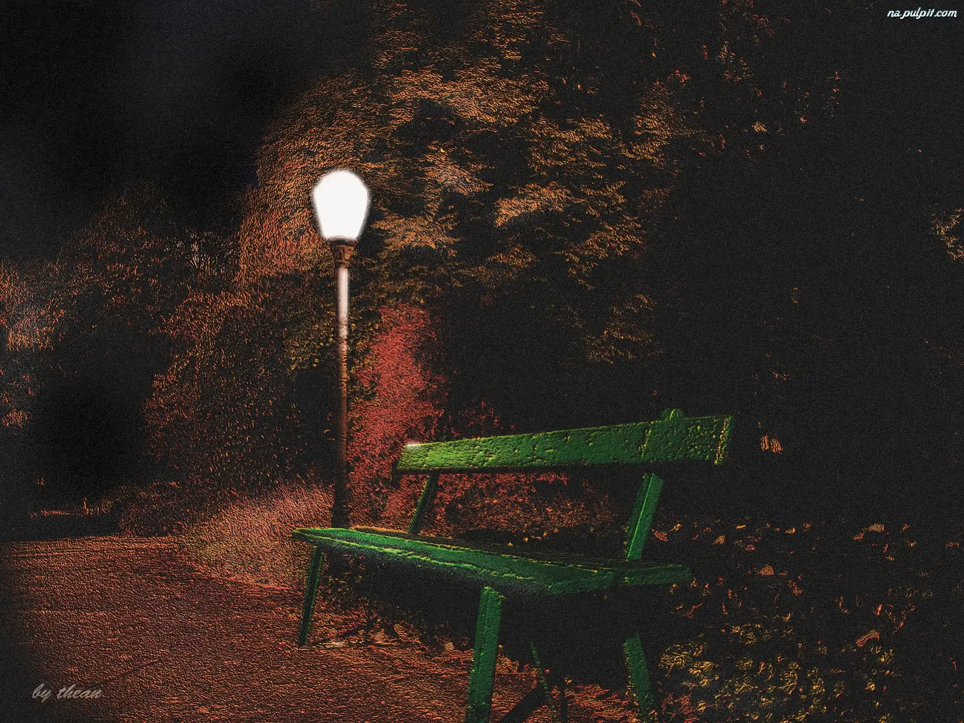 Ławeczka, Latarnia, Nocą, Park, Zielona Na Pulpit