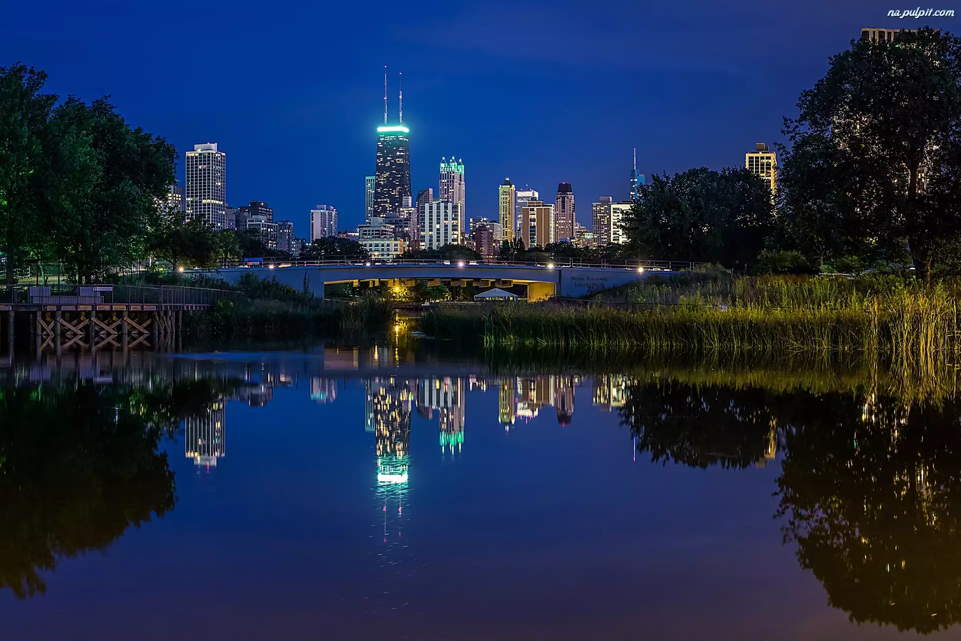 Lincoln Park, Most, Noc, USA, Chicago, Wieżowce Na Pulpit
