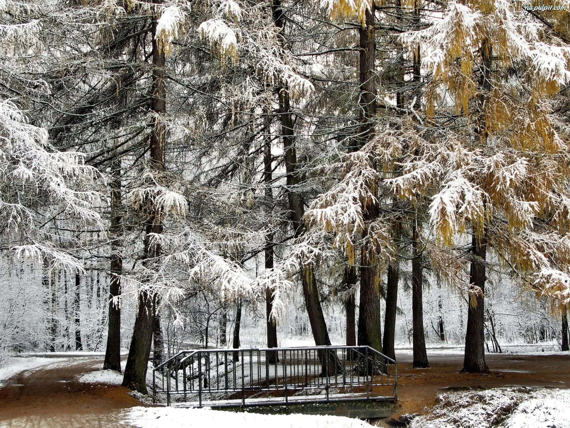 Śnieg, Mostek, Park, Pierwszy Na Pulpit