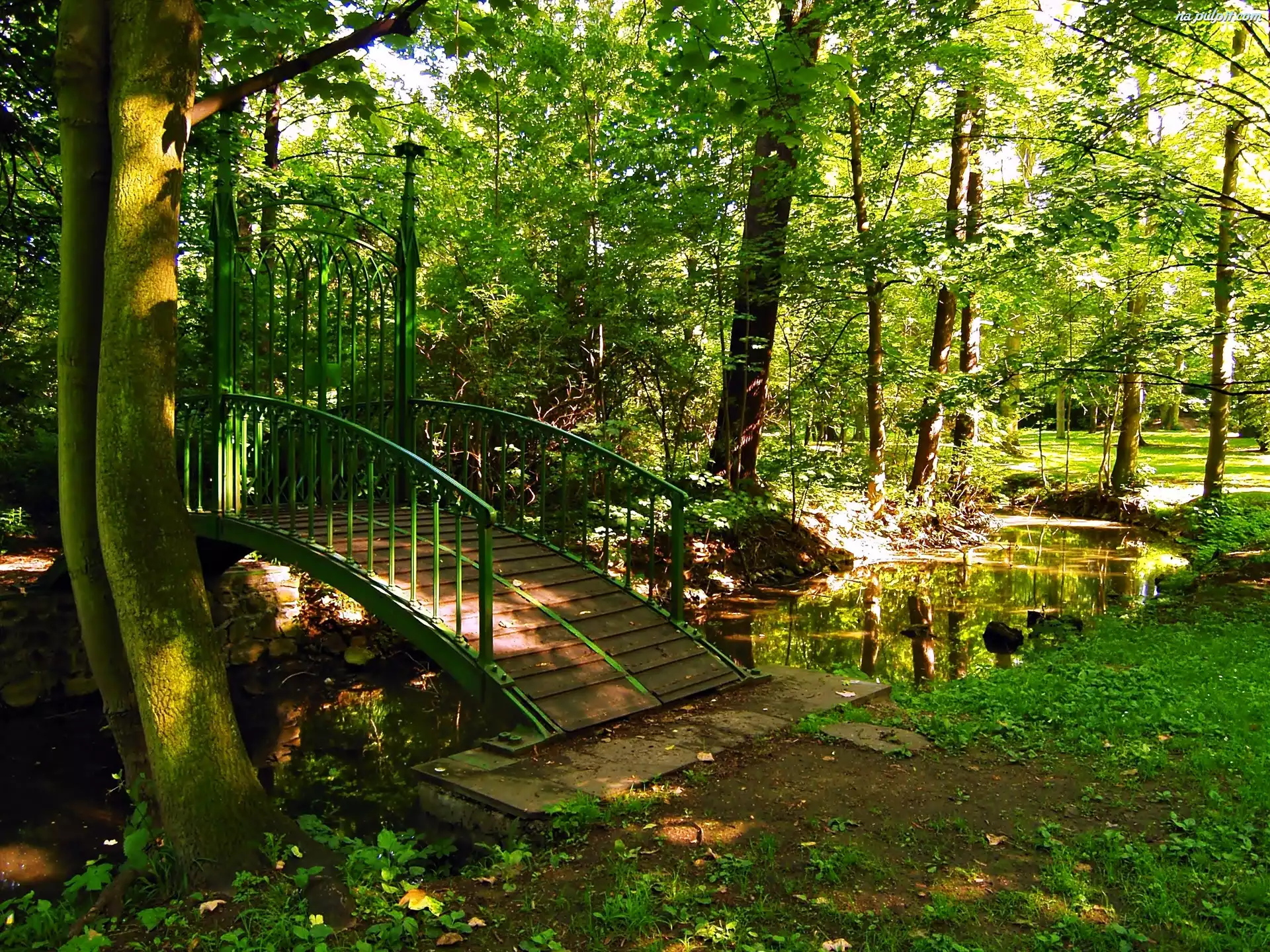 Światło, Mostek, Rzeczka, Park, Przebijające