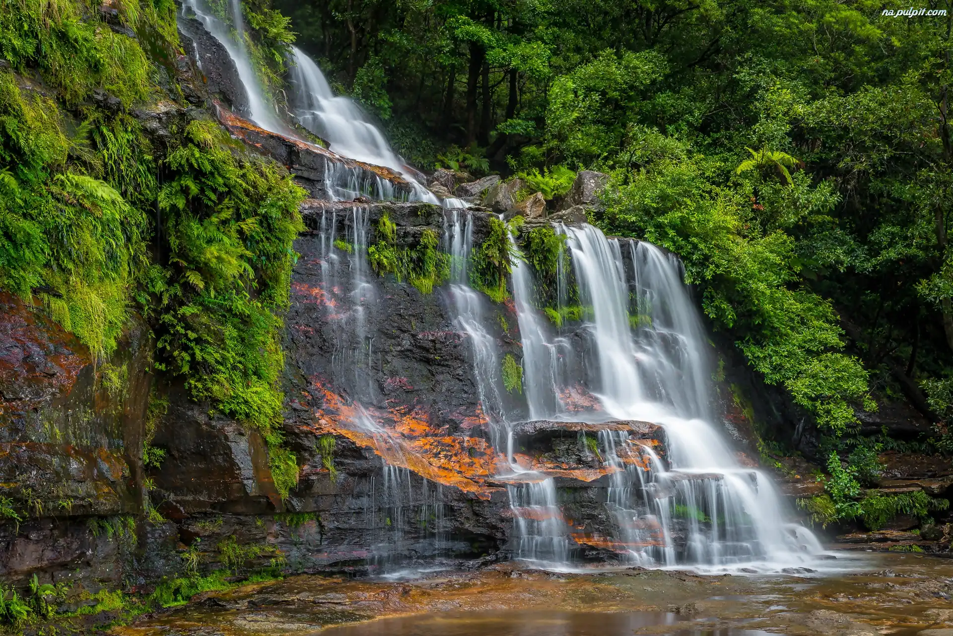Park Narodowy Blue Mountains, Nowa Południowa Walia, Skały, Zielona, Wodospad Katoomba, Australia, Roślinność Na Pulpit |