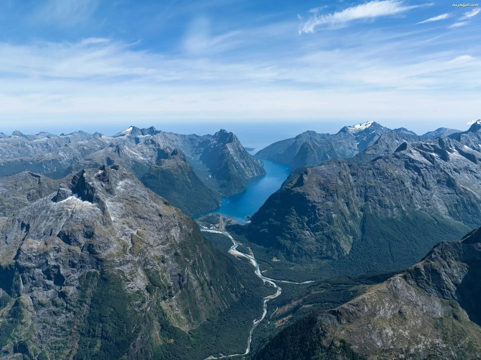 Park Narodowy Fiordland, Góry, Fiord, Zatoka Milforda, Skały, Nowa Zelandia