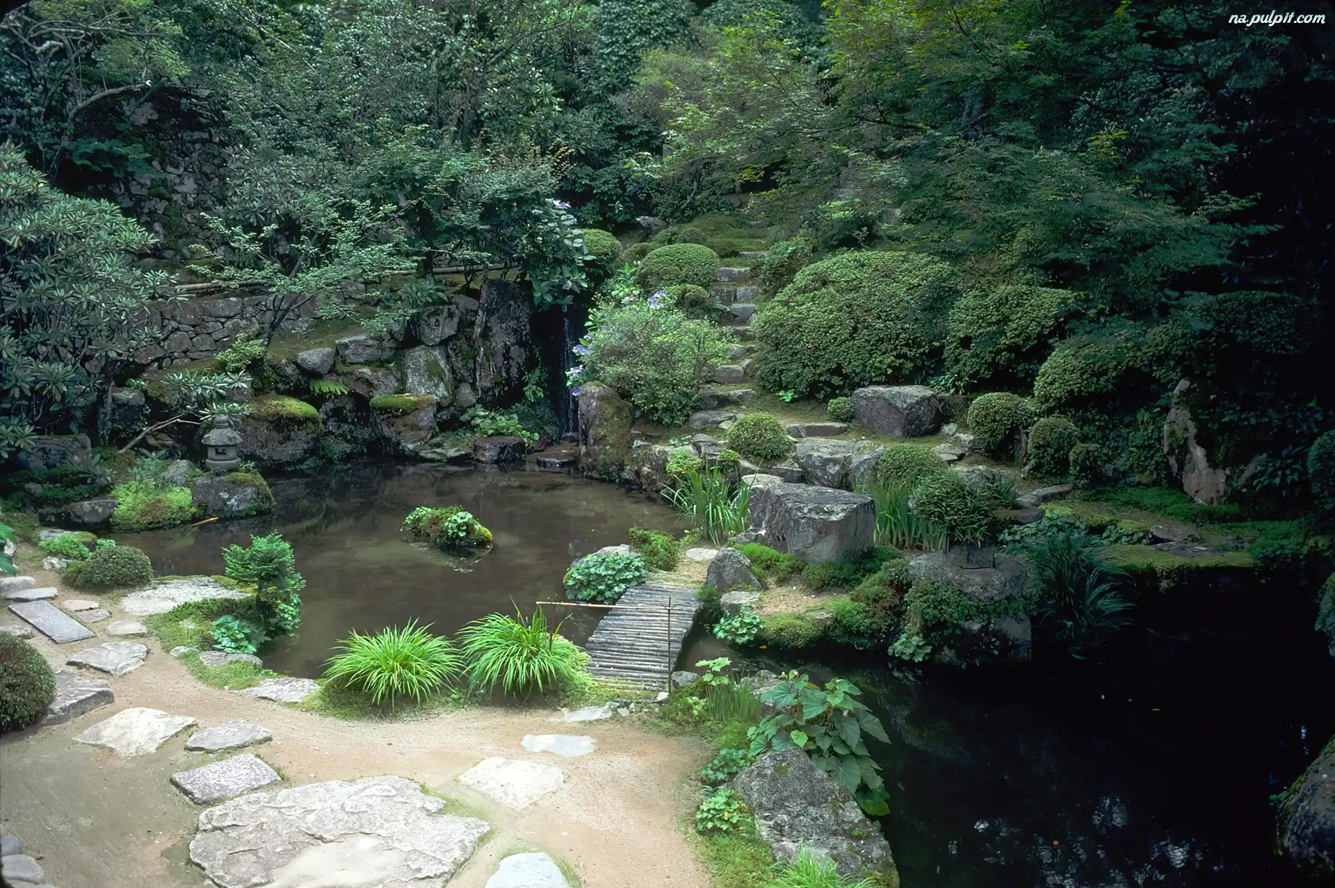 Park, Krzewy, Wodne, Oczko, Mostek Na Pulpit