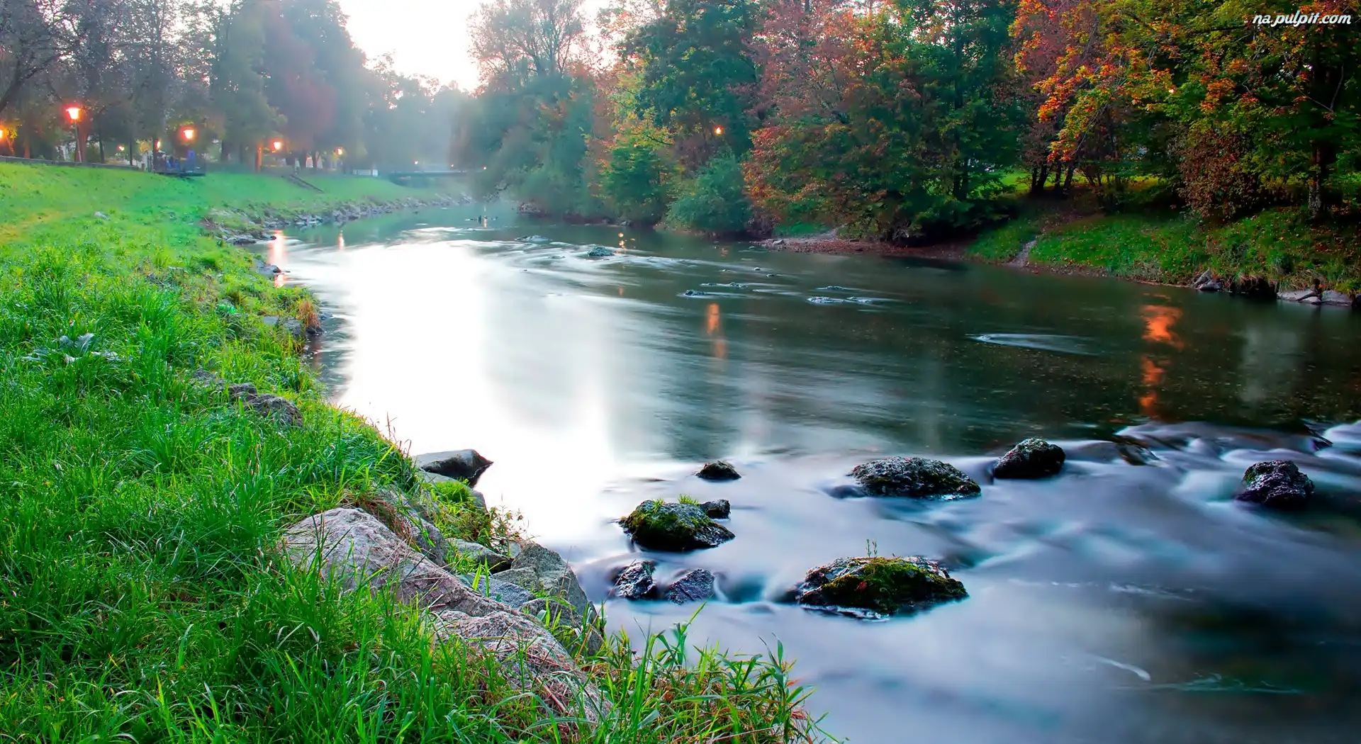 Oświetlenie, Park, Rzeka Na Pulpit