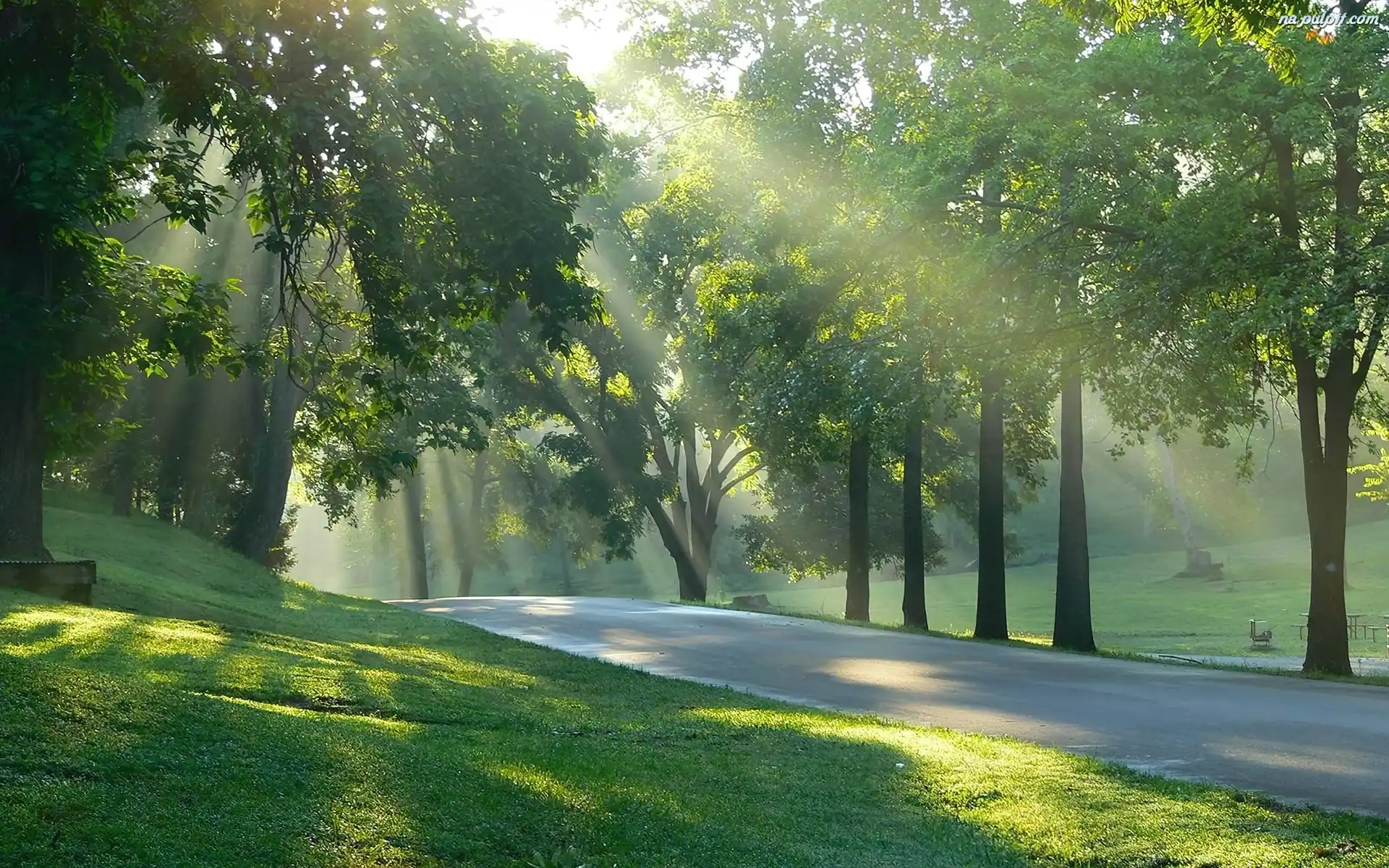 Park, Światło, Przebijające, Drzewa Na Pulpit
