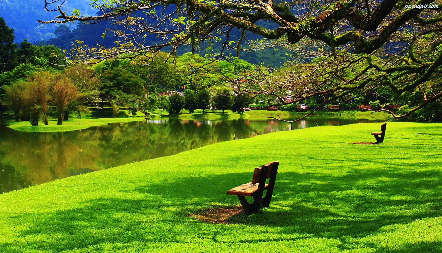 Ławeczki, Rzeka, Park, Drzewa Na Pulpit