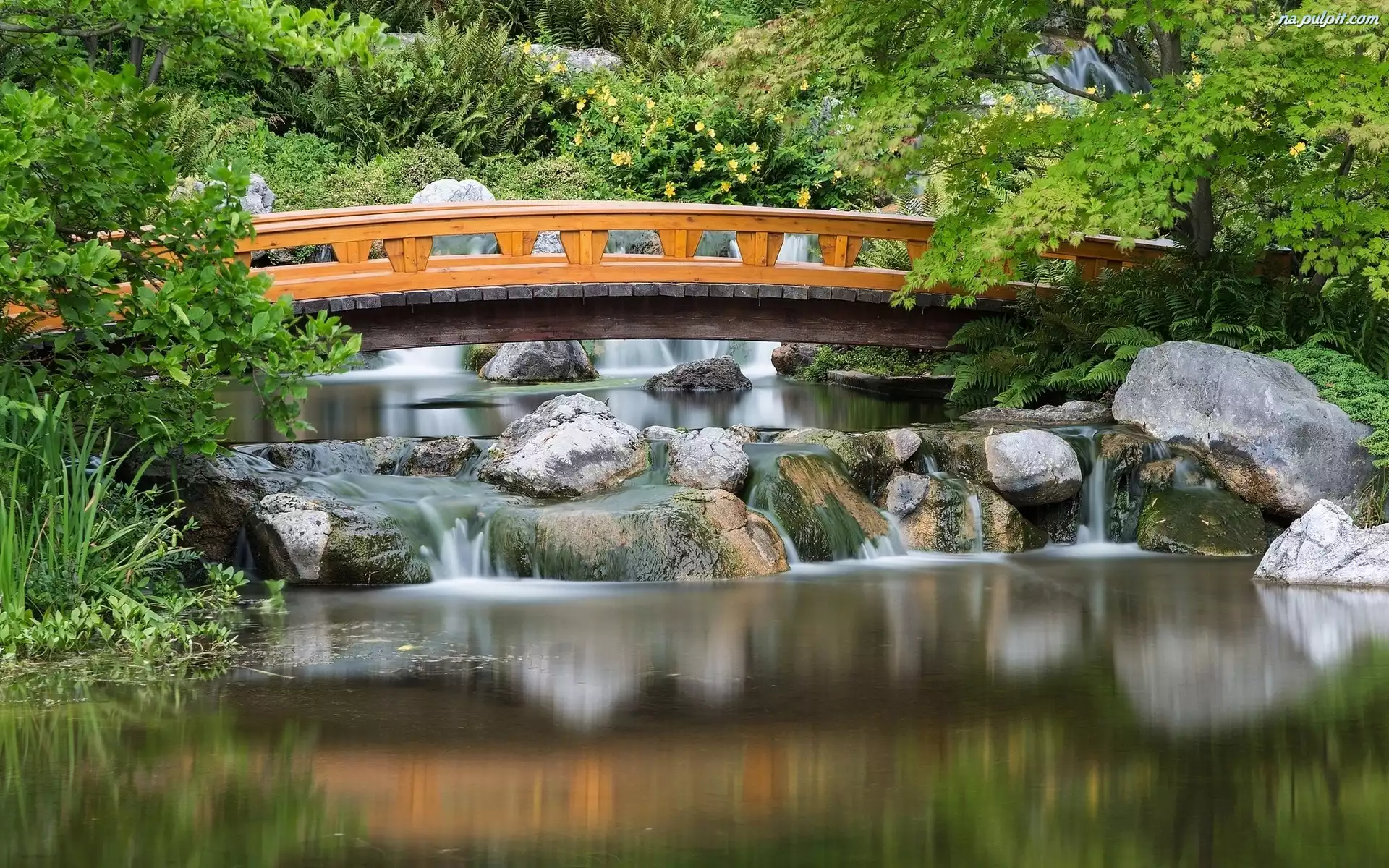 Park, Krzewy, Drzewa, Most, Rzeka, Skały