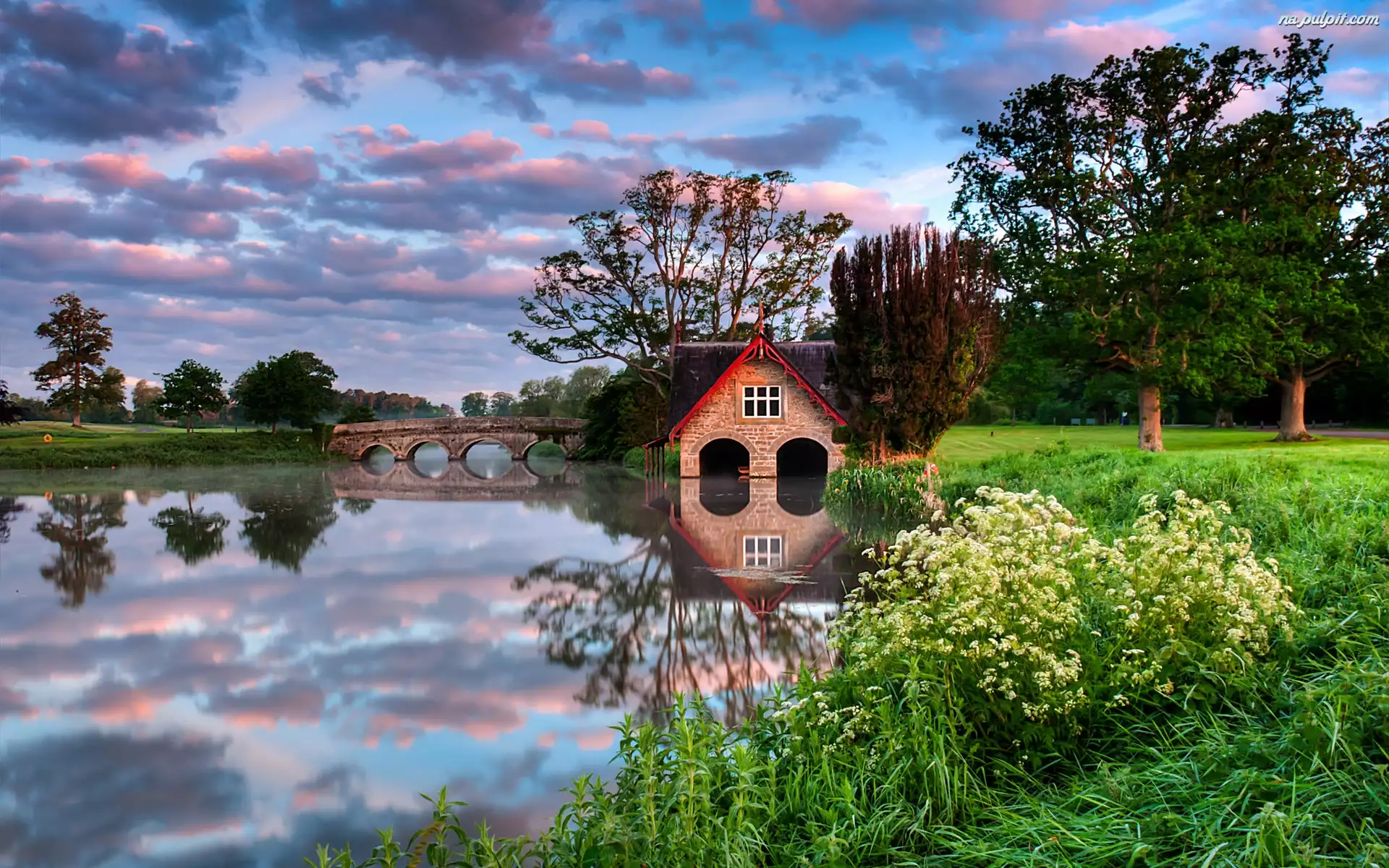 Park, Dom, Most, Rzeka, Kwiaty Na Pulpit