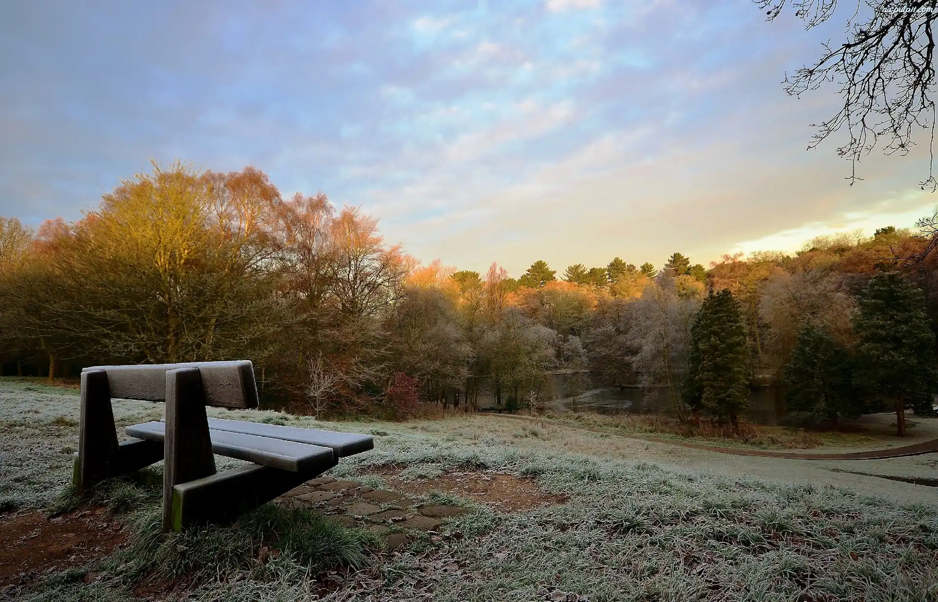 Szron, Park, Ławka Na Pulpit