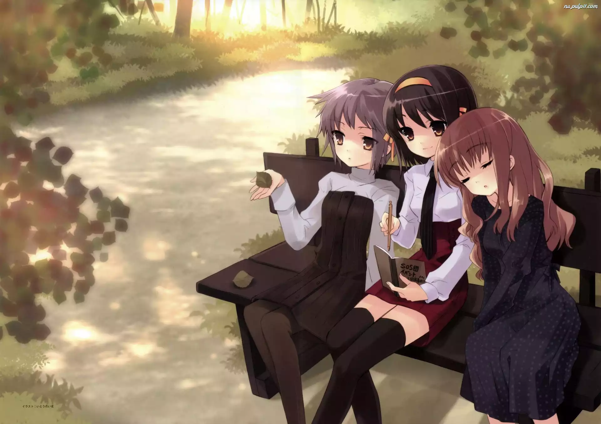 Park, Dziewczyny, Trzy, Ławka Na Pulpit