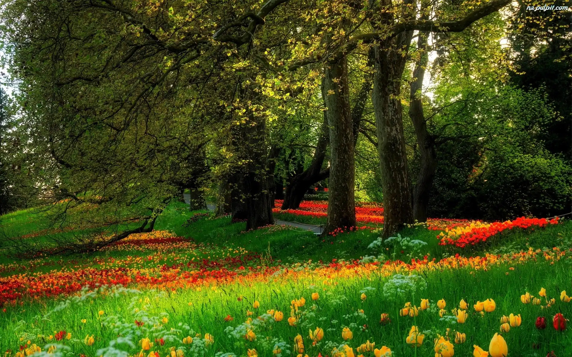 Tulipany, Park, Drzewa Na Pulpit