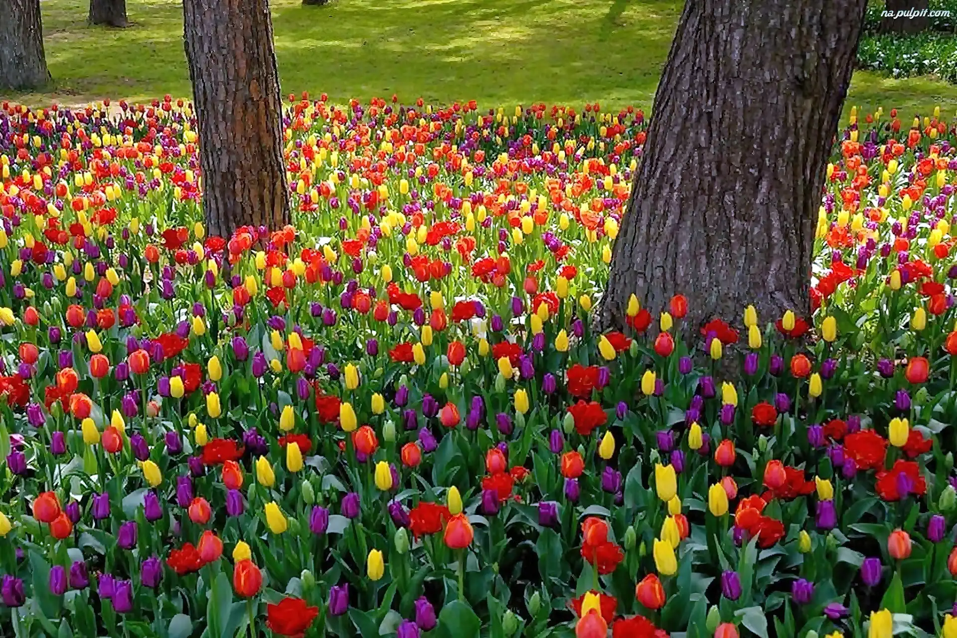 Kwiaty, Wiosna, Pola Pomarańczowy, Tulipan Park, Most, Drewniany, Rzeka Leśna, Rzeka Drzewa, Góry Tulipany, Dwa, Czerwonożółte Taras, Drzewa, Woda Alejka, Drzewa, Ławeczka, Park, Krzewy Łodygi, Białe, Tulipany Płatki, Tulipan, Błękitne Holandia, Wiatrak, Tulipany Park, Posąg Tulipany, Wazon Tulipany